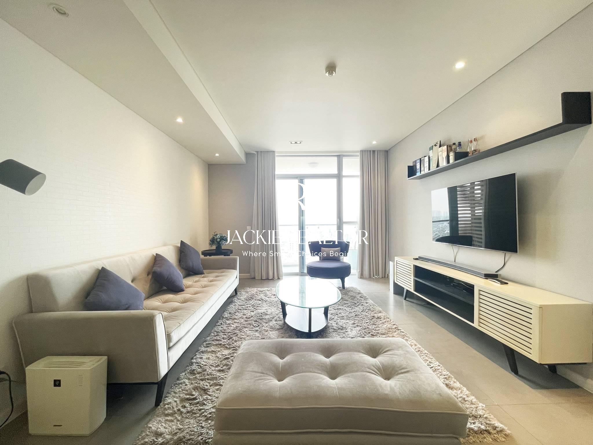 This apartment is located on the high-level floor of Tower A, Watermark Westlake, Tay Ho area, Hanoi. It's a beautiful apartment with the elegant furniture style. The total area is about 103 sqm and that's a very spacious for 2 bedrooms & 2 bathrooms. The furniture is fully provided with the high quality and stardard.
