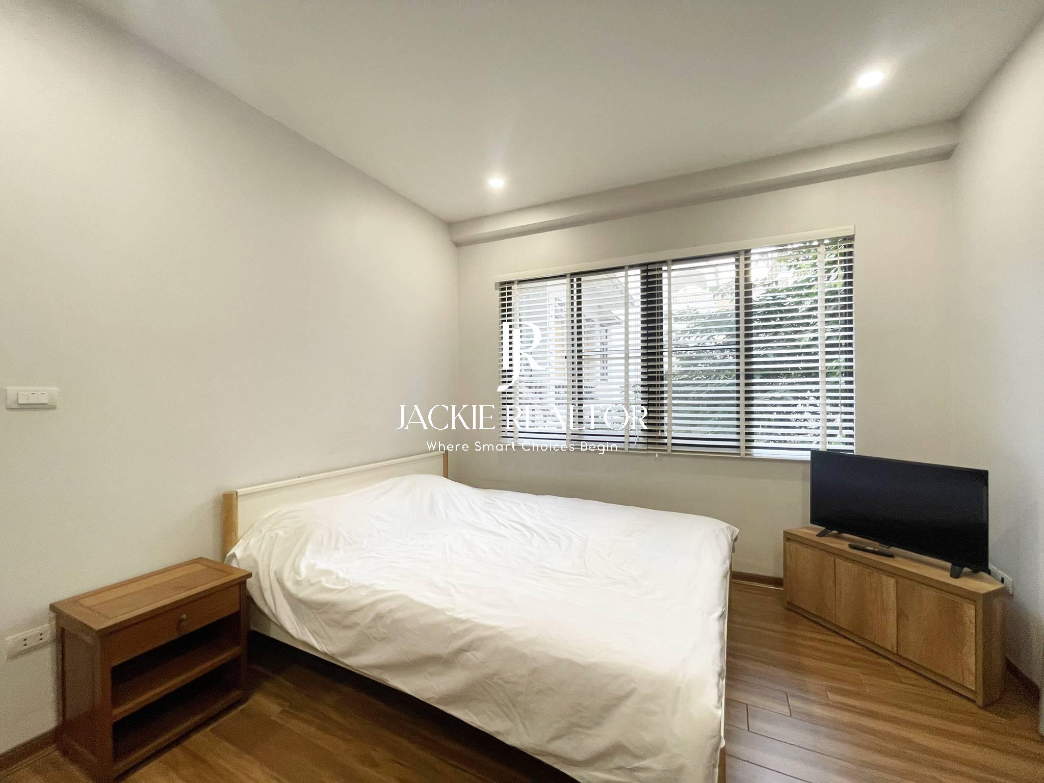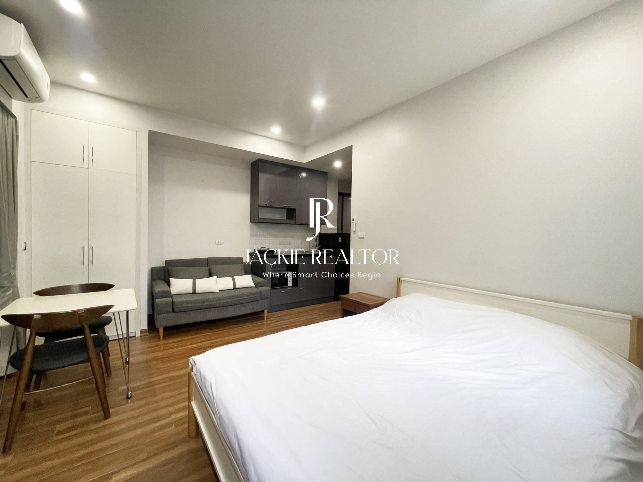 Very airy studio for rent with two big windows for rent in lane 9, Dang Thai Mai street, Tay Ho District will be a perfect choice for those who have a low budget but still want to stay in a place that is both comfortable and bright. The apartment is only 23m2, but still ensures the necessary facilities for residents such as beds, wardrobes, TVs, dining tables and chairs, kitchen systems and kitchen cabinets, air conditioners, sanitary equipment... This studio for rent also comes with services included in the price such as internet, running water, cable TV, cleaning, parking, elevator...