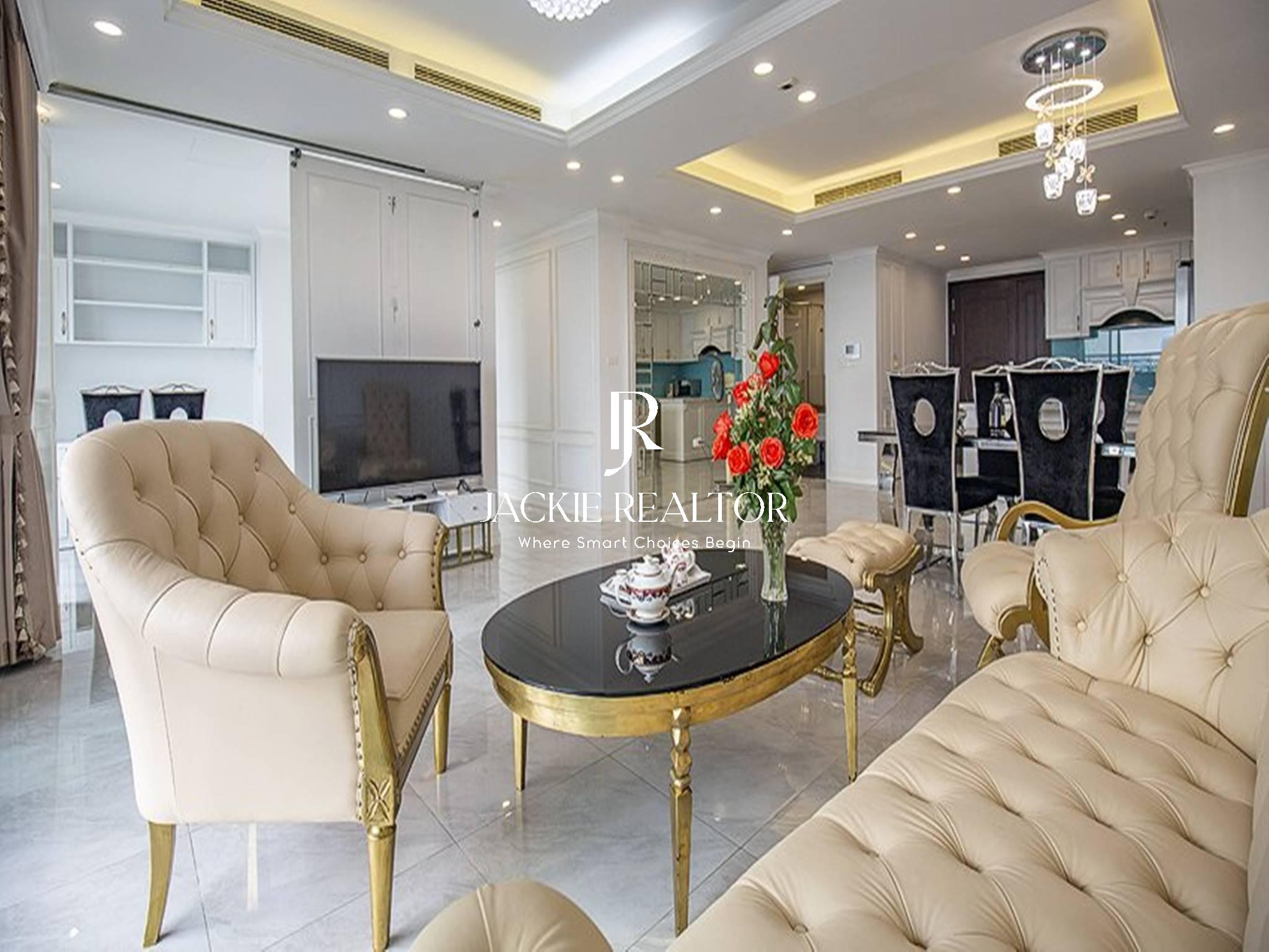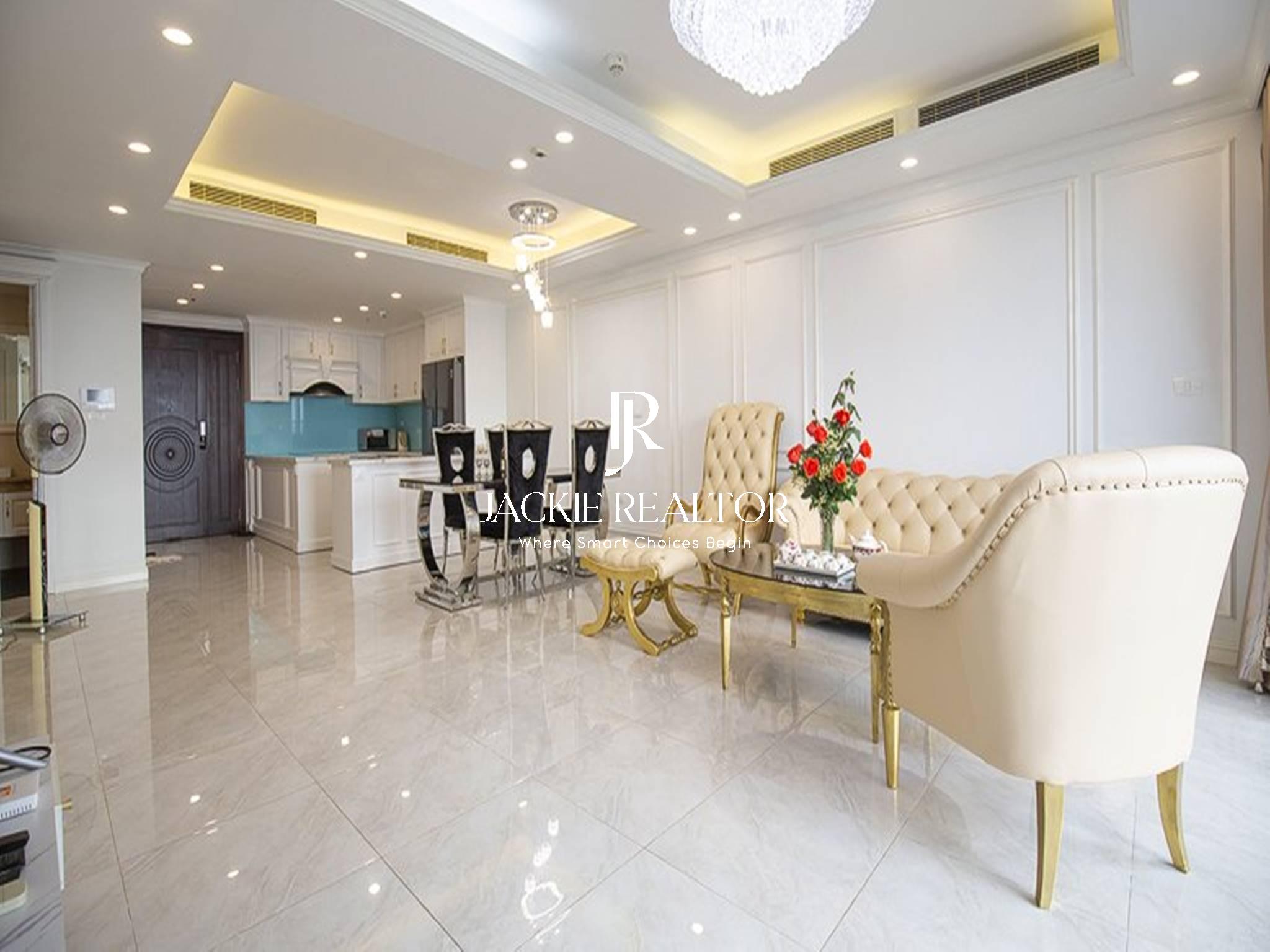 The apartment is equipped with furniture designed in a neoclassical style for those who love a mixture of modernity and classicism. And the apartment is also fully furnished with all furniture and electronic equipment for you to move in and use.