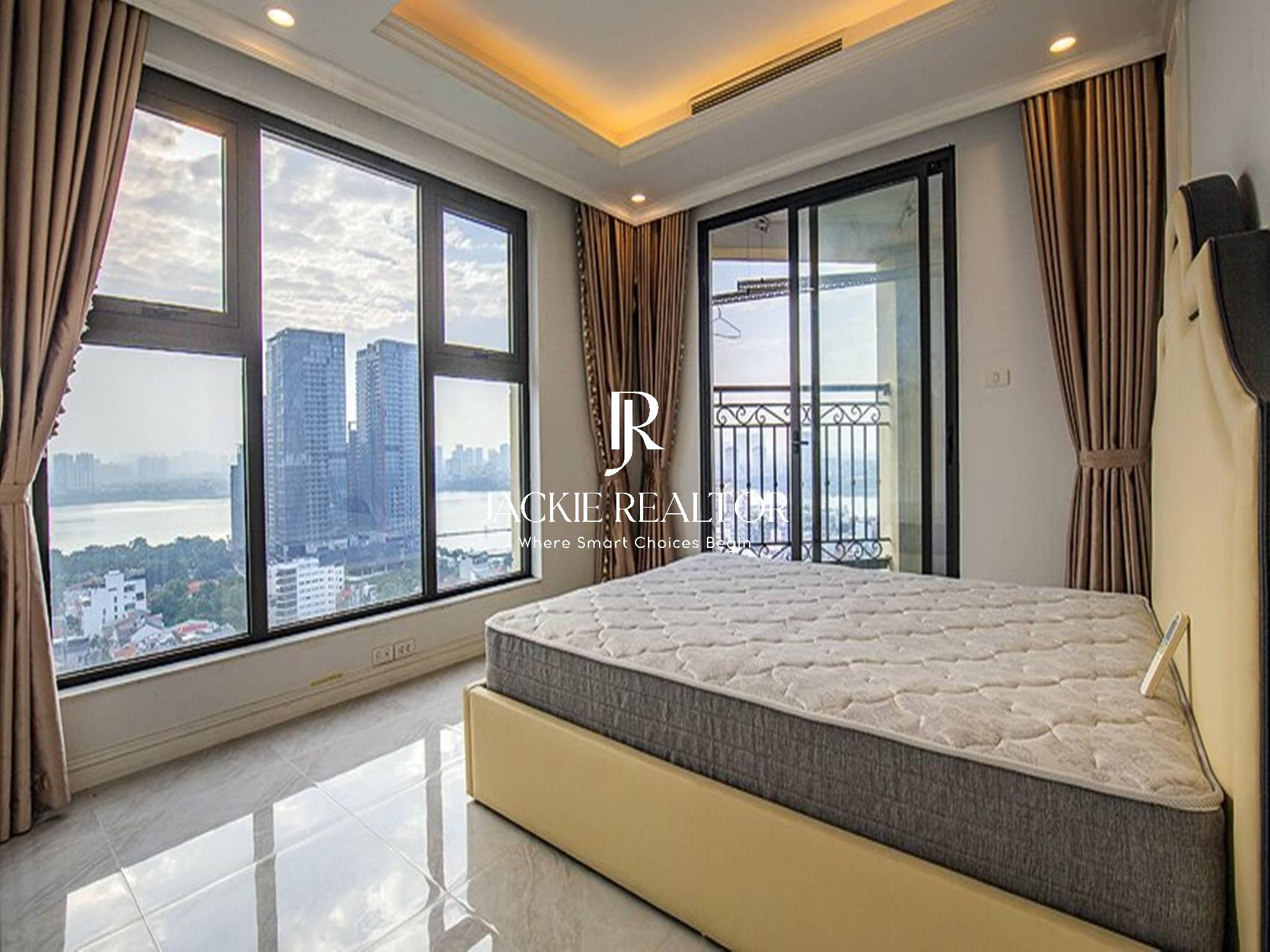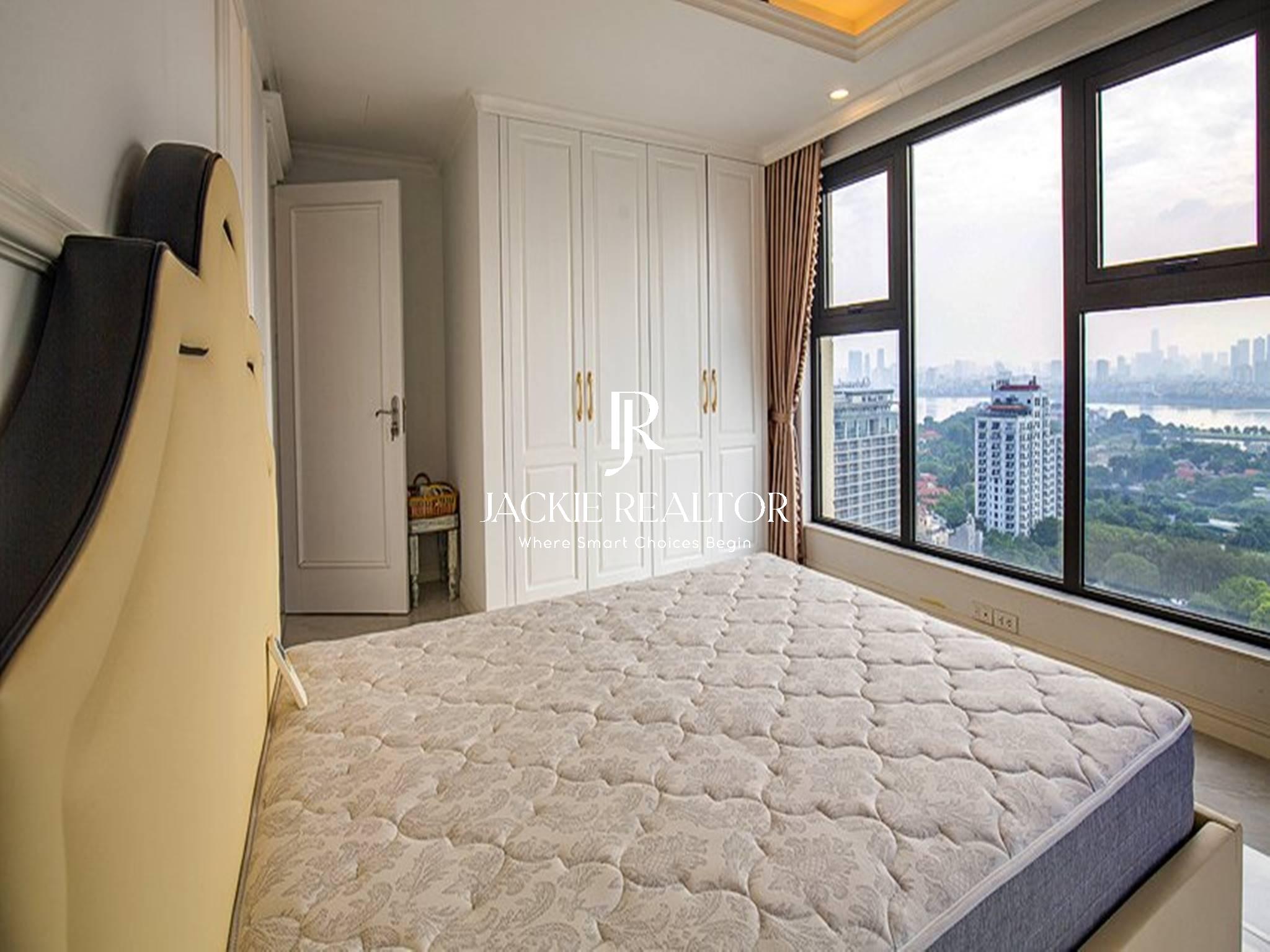 The apartment is designed as a neo-classic style for rent at Tower A, D' Le Roi Soleil project. The apartment has an extremely large area of up to 146 m2, and it is truly a place to live with great space for families who need to use 3 bedrooms and 2 bathrooms. The living room has a balcony with a great view of West Lake. A large kitchen with modern kitchen equipment will be a place for housewives to prepare delicious meals for the family.