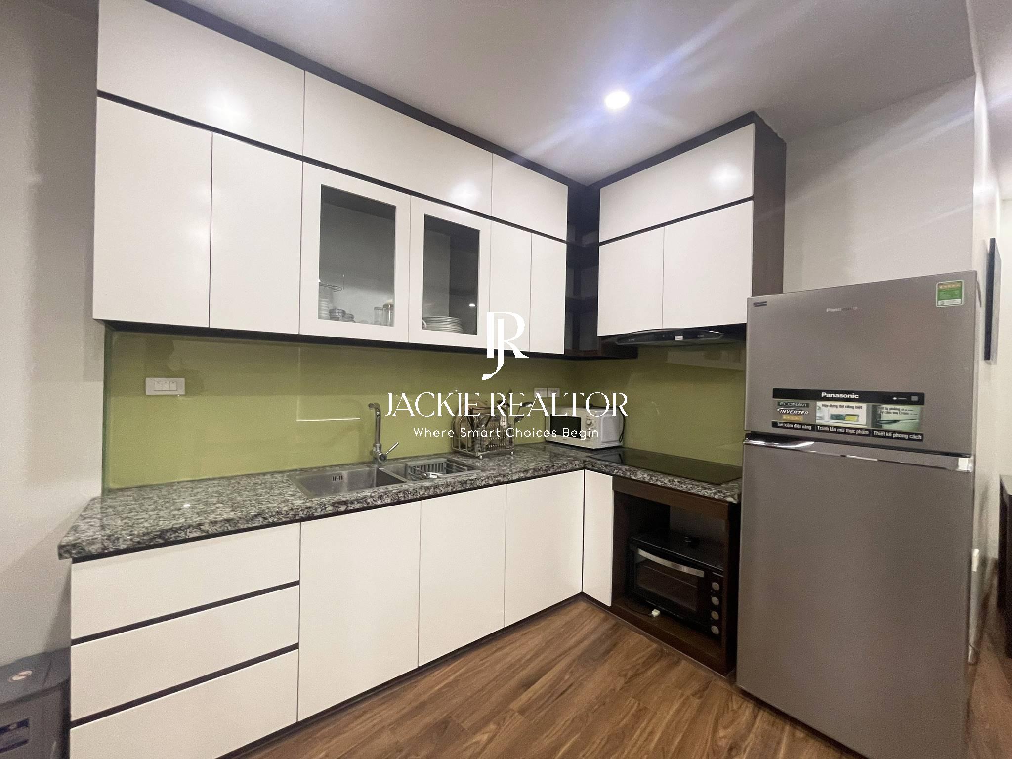 The apartment is located right on To Ngoc Van street with a total usable area of up to 75m2. With a design of 2 bright bedrooms and 2 bathrooms with bathtubs, the apartment is really a perfect place for a small family or groups of friends to share. This apartment has also come with all the equipment and furniture to give you a comfortable stay. You will feel like you are in your own home.