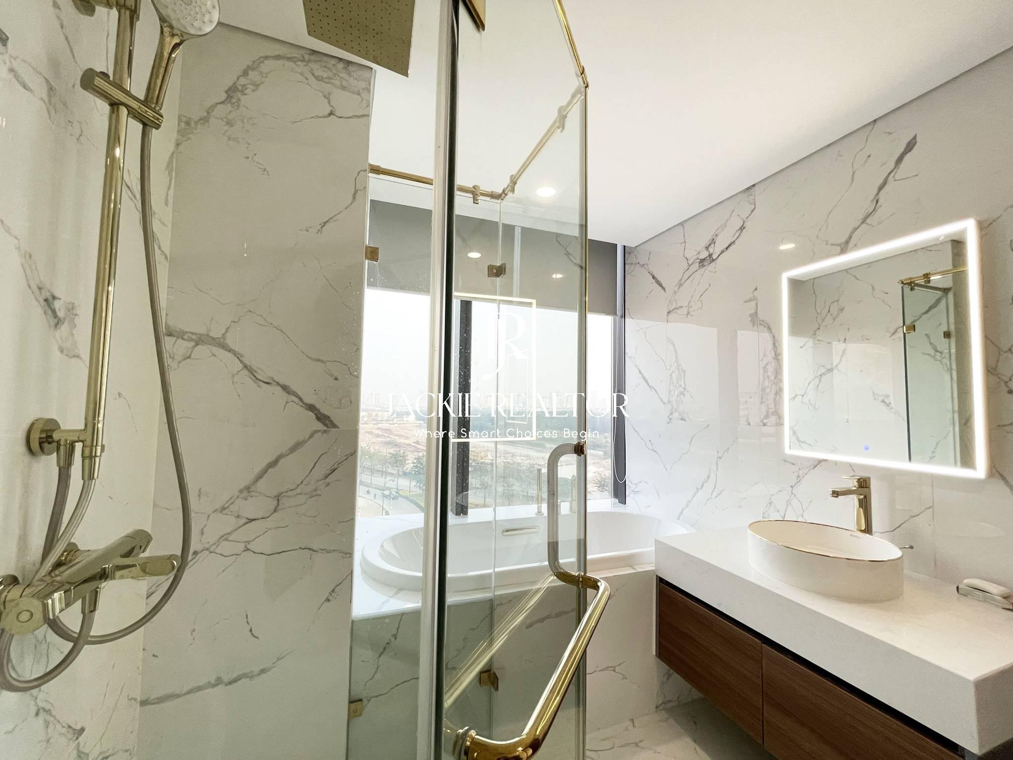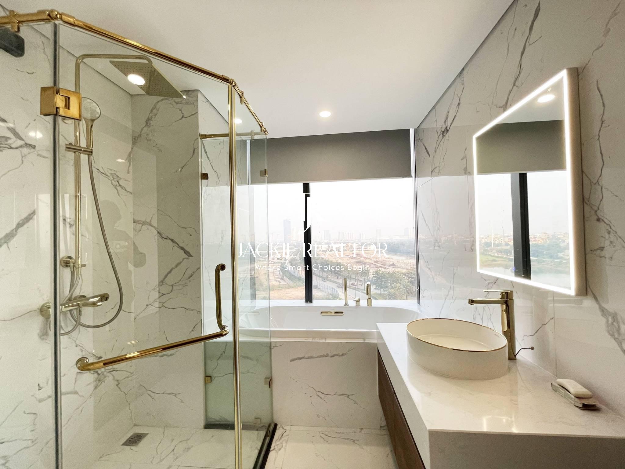 This Sunshine City apartment is located at S4 block with a nice view of roundabout. Because it's in the corner of building so every rooms are very bright and airy. Besides, the living area is also featured of 103 sqm and well designed with 3 big bedrooms and 2 ensuite bathrooms with a bathtub and showers. The living room has a balcony looks down to the bridge of the project. The kitchen is open and large dining area to have meals together.