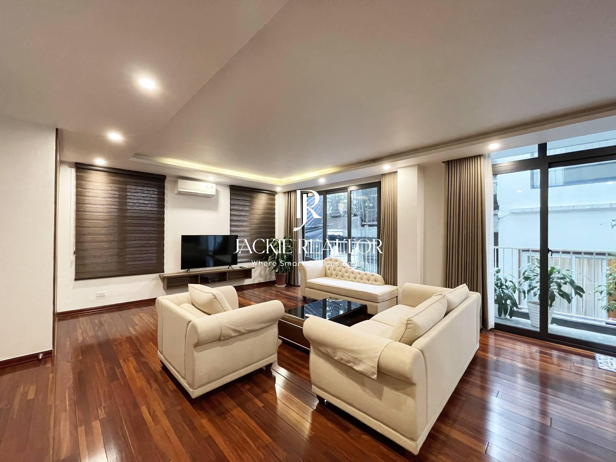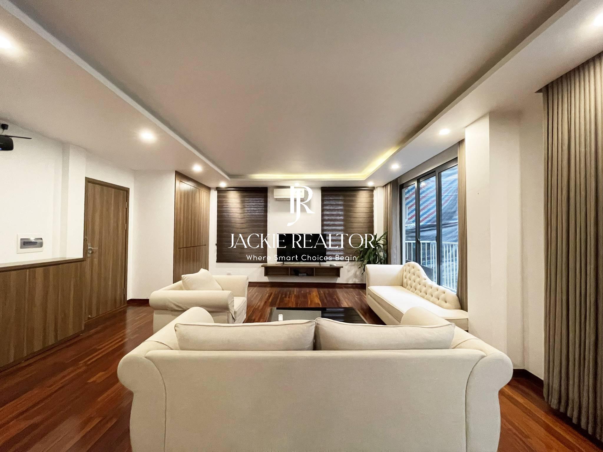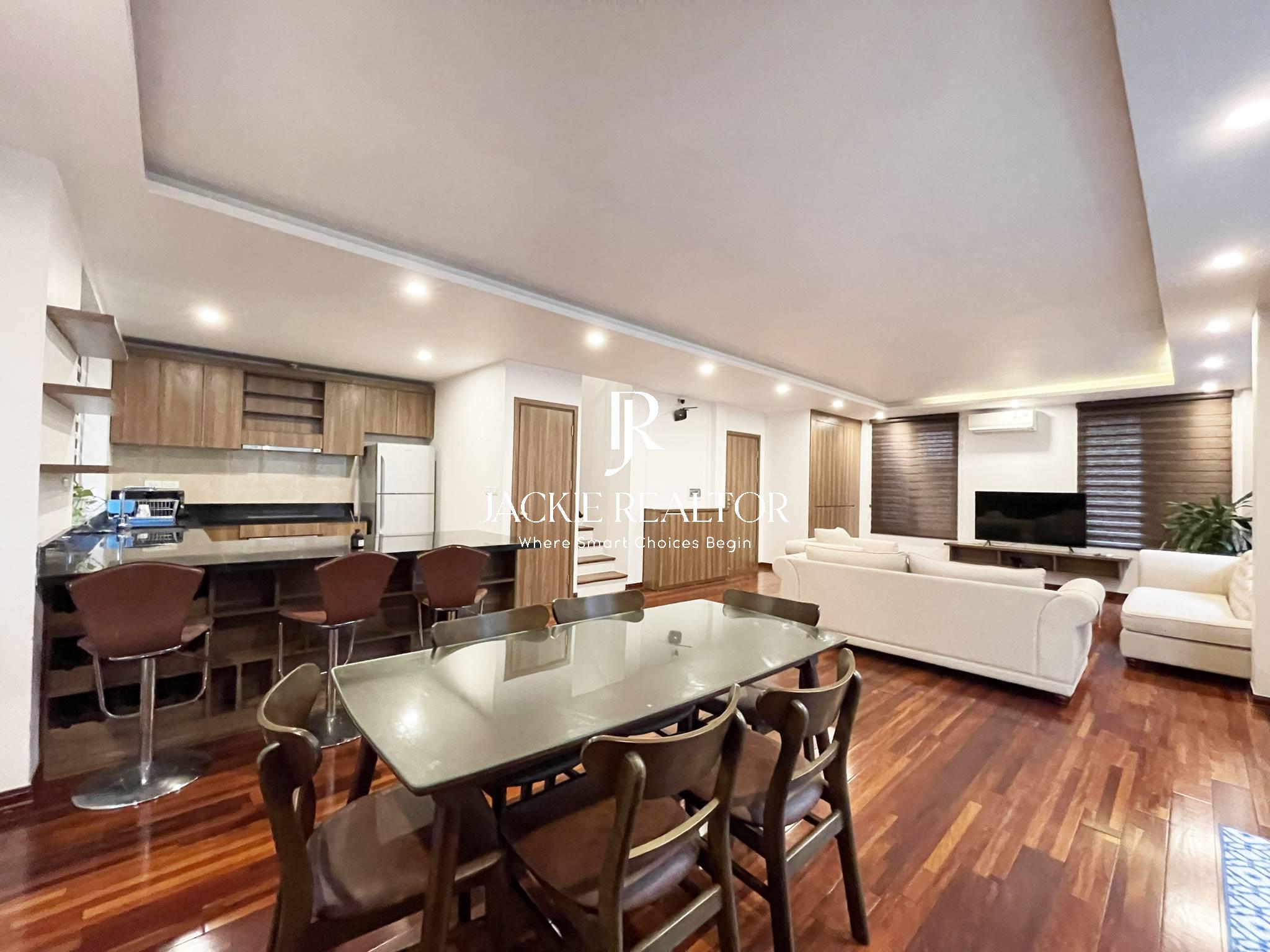 If you're in search of a lavish and contemporary place to live in Hanoi, then you need to take a closer look at this breathtaking duplex apartment available for rent in Quang Khanh, Tay Ho. This apartment is adorned with stylish and modern furniture, boasting an open-plan living and dining area that's ideal for hosting guests or just lounging with loved ones.