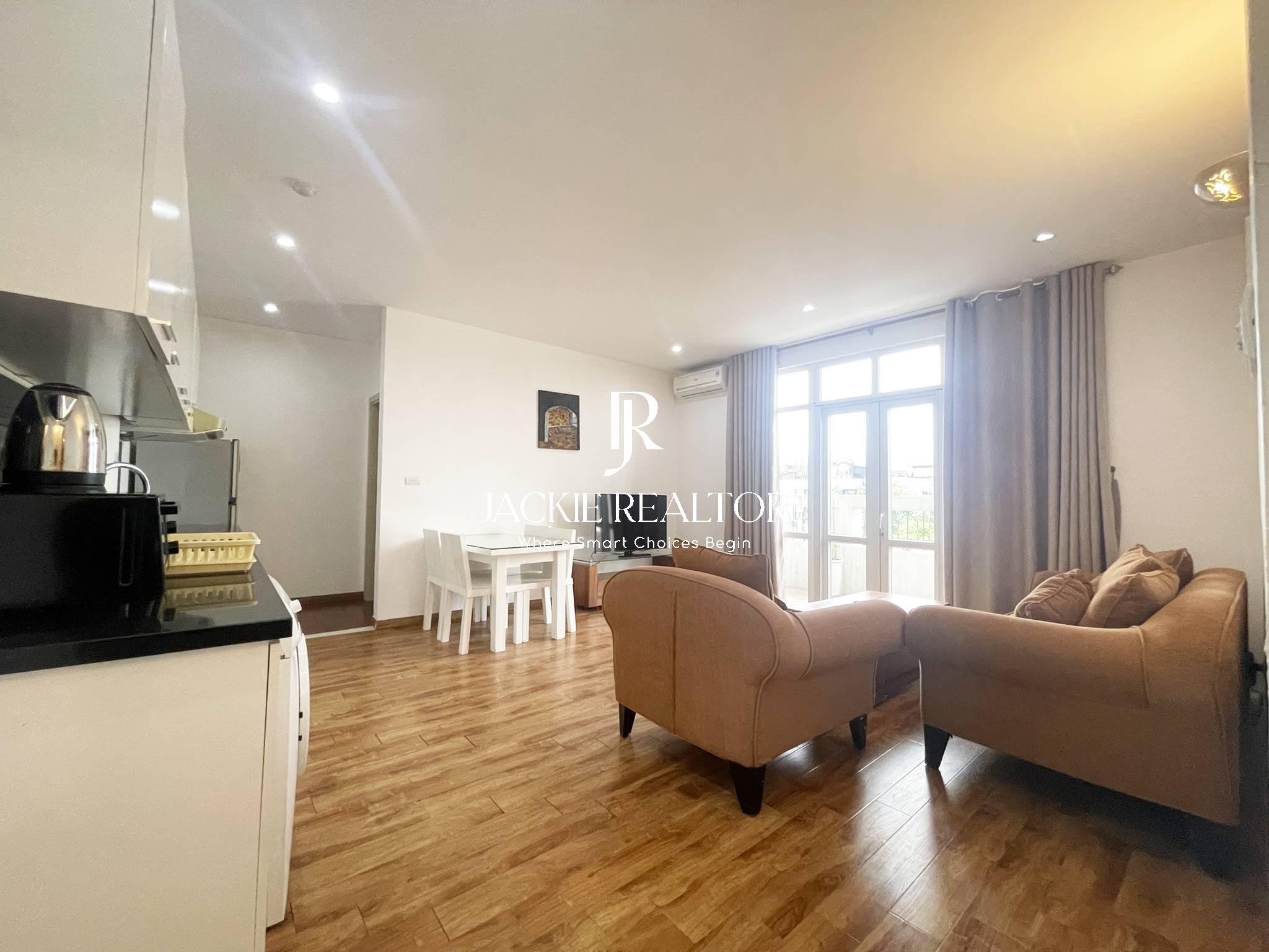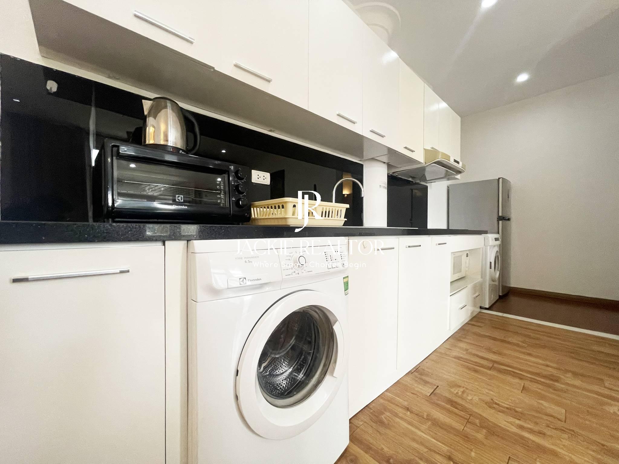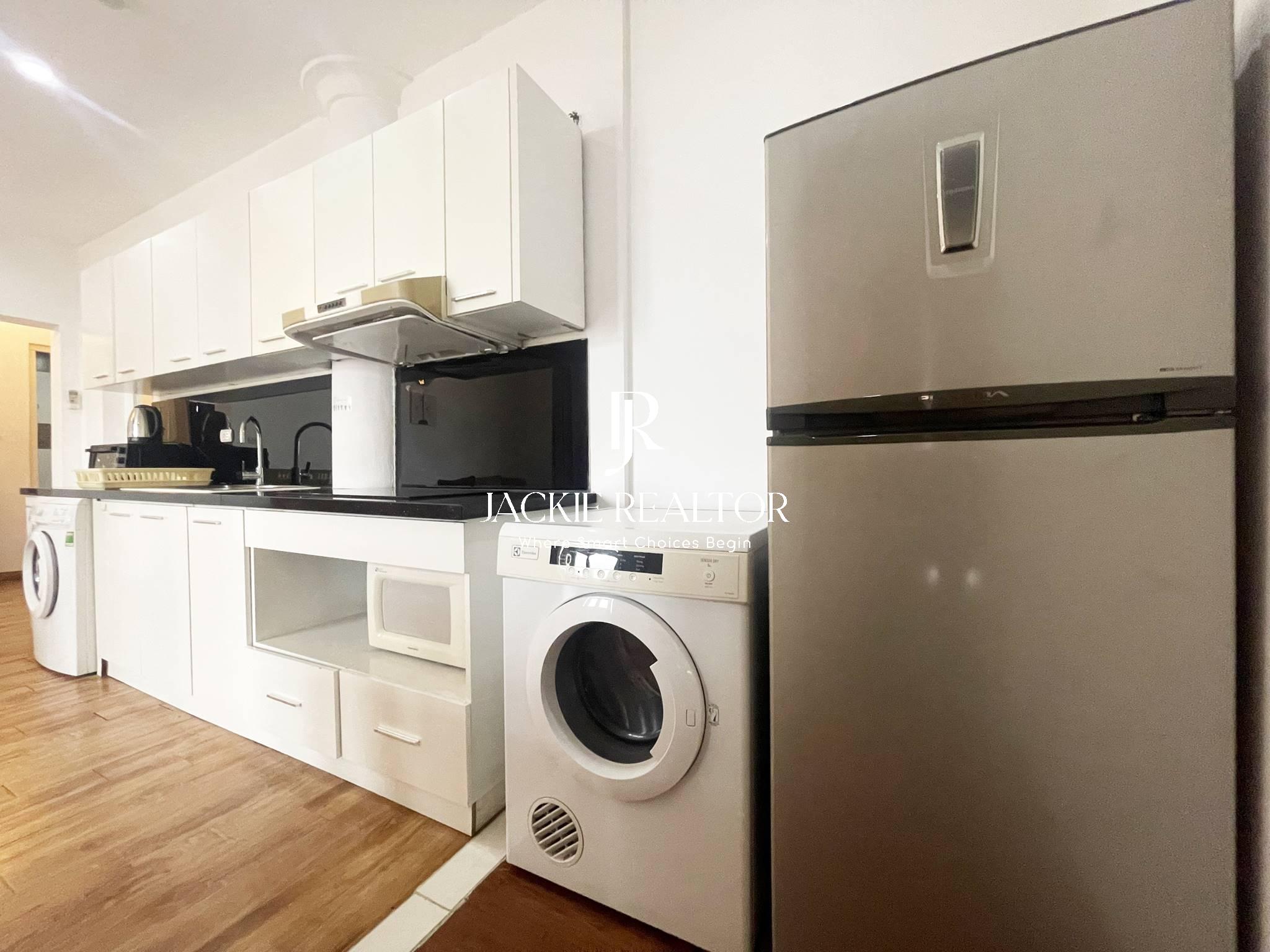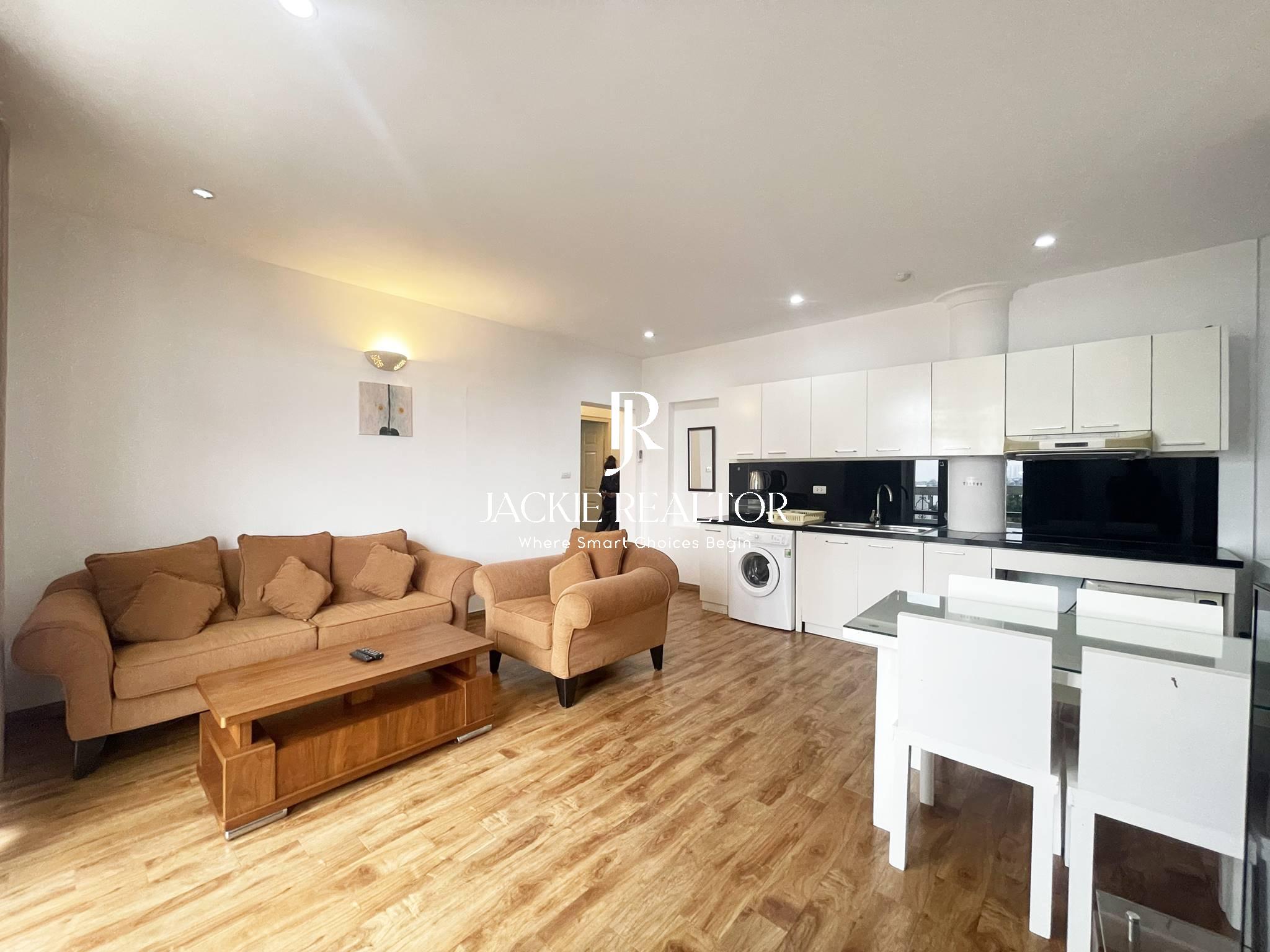 It's well constructed with 90 sqm that laid out with 2 bright bedrooms with only one self-contained bathrooms, a spacious living room, a dining area and an open kitchen. All rooms are bright and airy, fully furnished with nice interior.