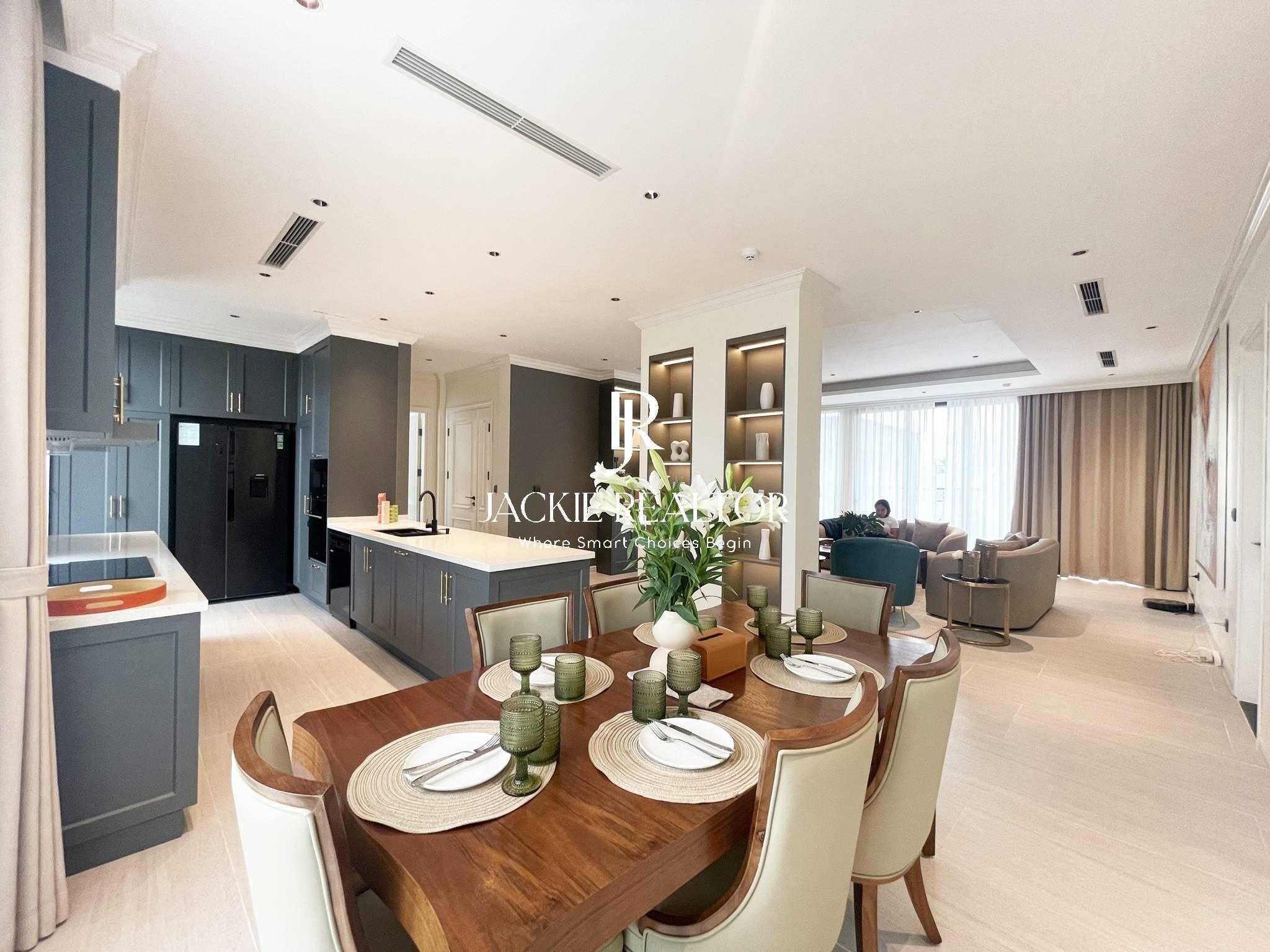 Are you searching for an elegant apartment for rent of To Ngoc Van? Look no further! This stunning apartment, spanning an impressive 220m2, is perfect for embassy families or multigenerational households who frequently entertain guests. With its elegant design and soothing ambiance reminiscent of a 5-star hotel, this apartment is sure to impress.