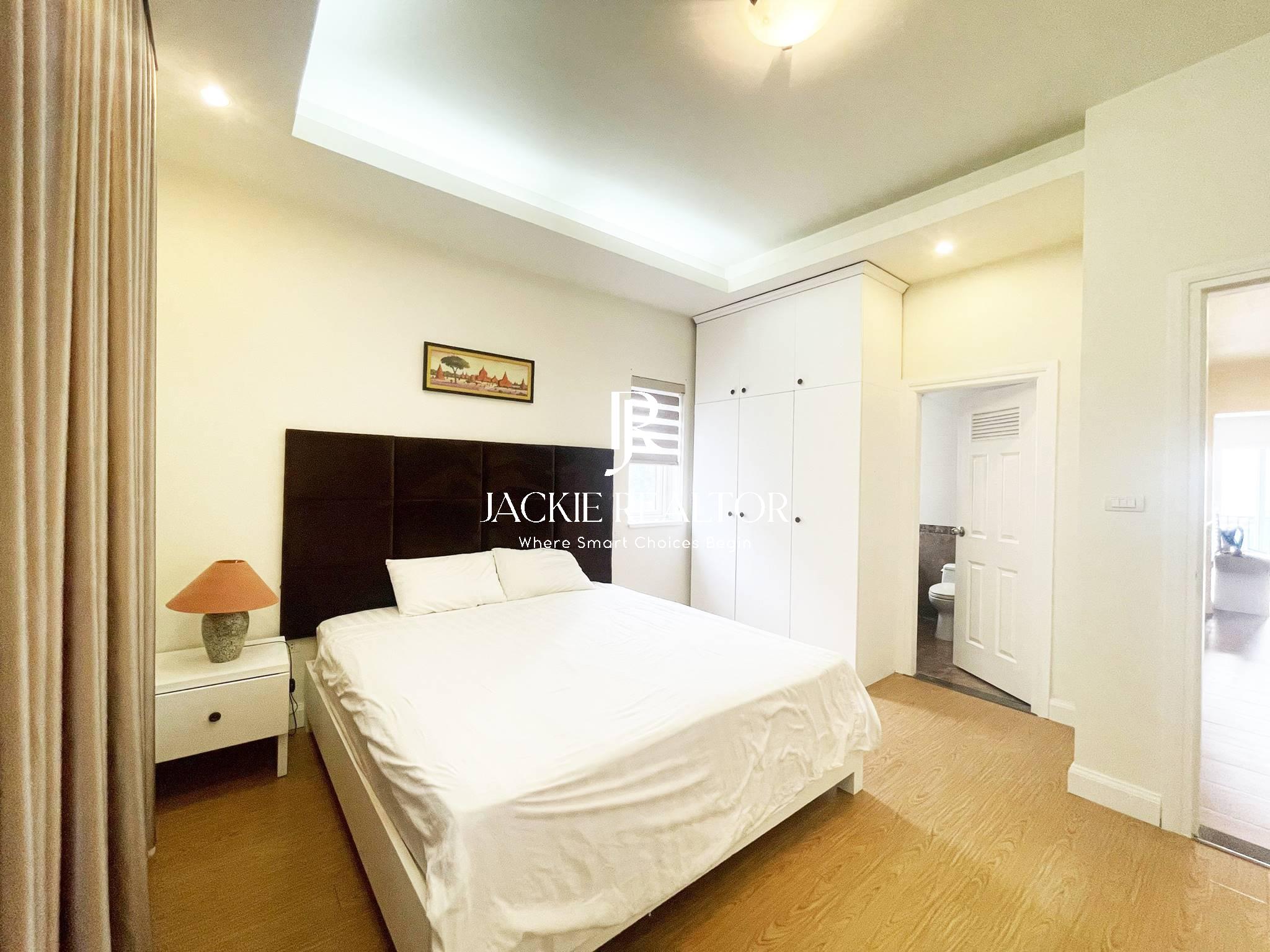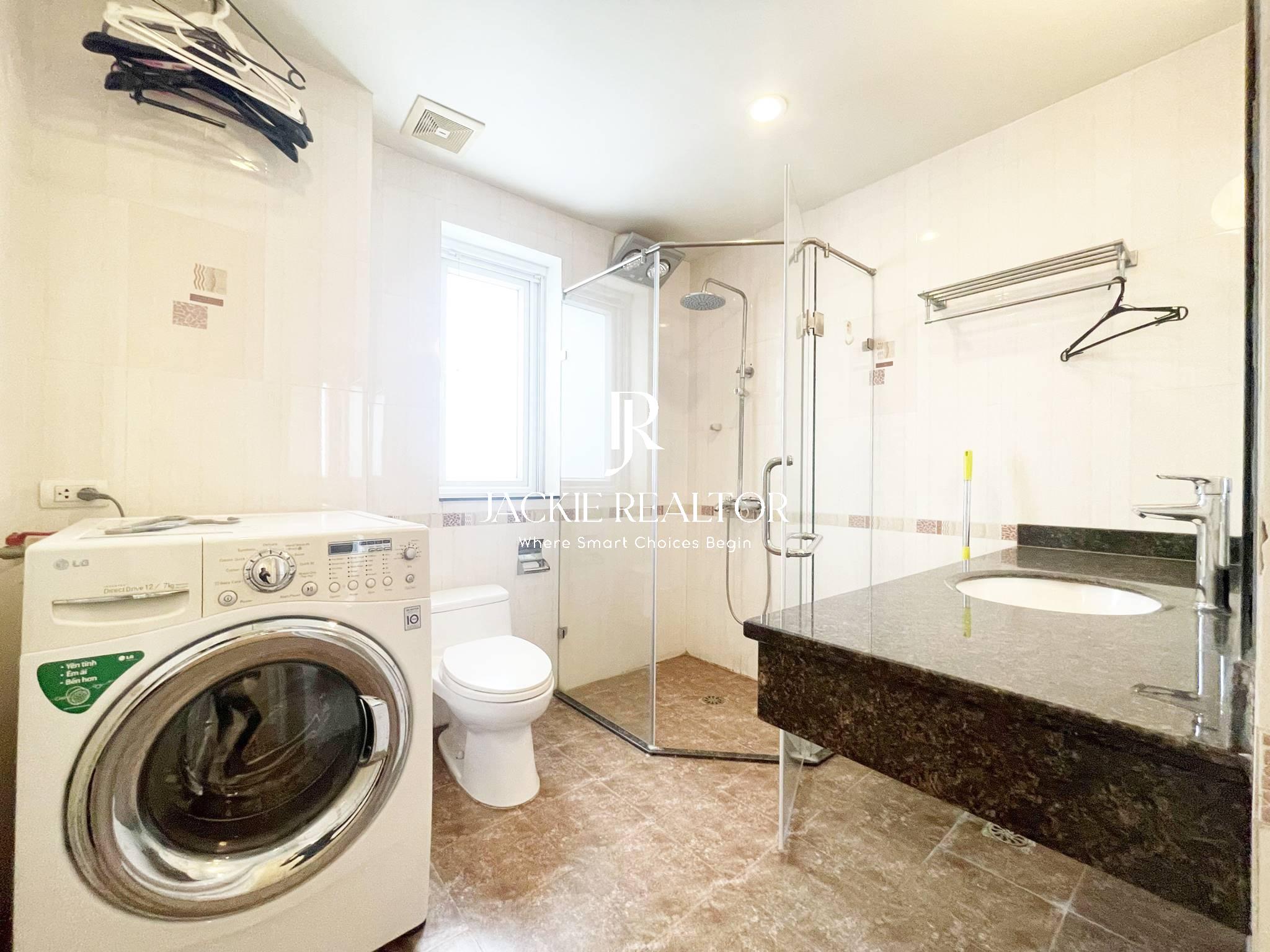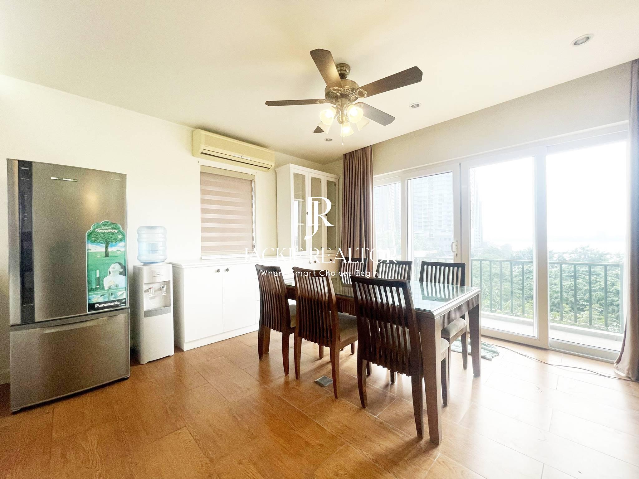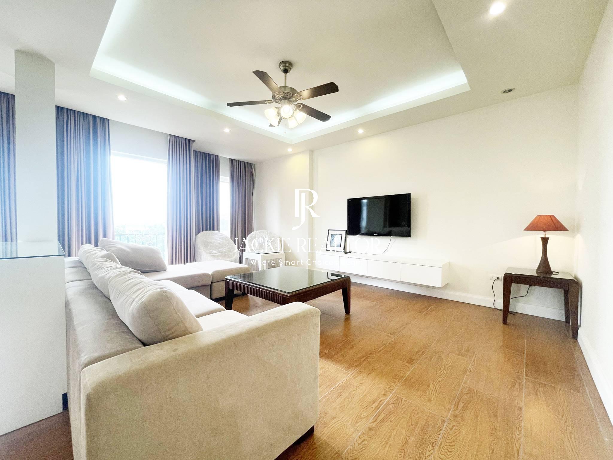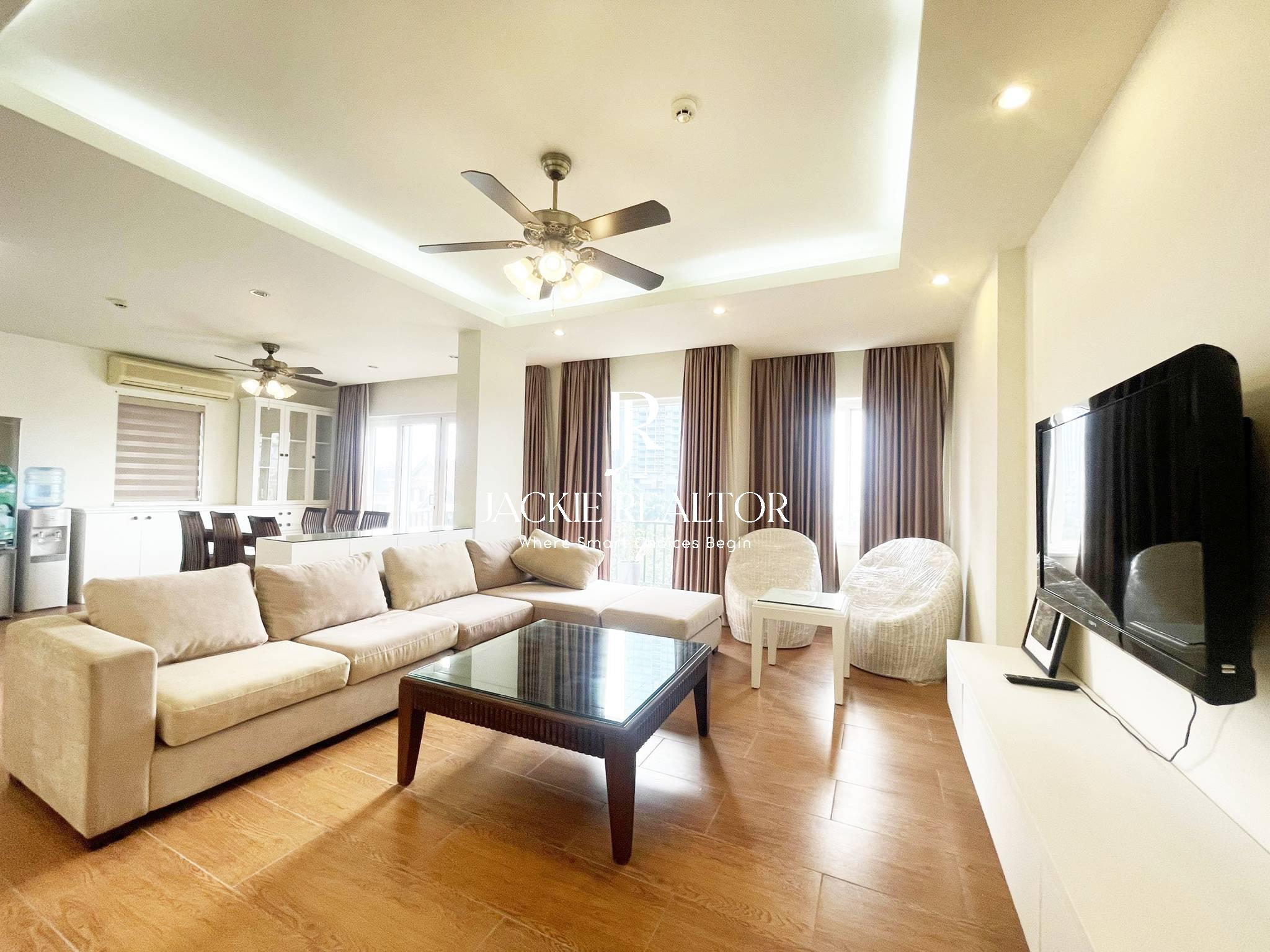 The apartment comes with services to serve for residents as internet, cable tv, water consumption, cleaning service. It's staying on the nice floor which faces with the West Lake and a nice park in front of the building. In addition, it's nearby the Horizon Bilingual International School that's convenient for children following the education here.