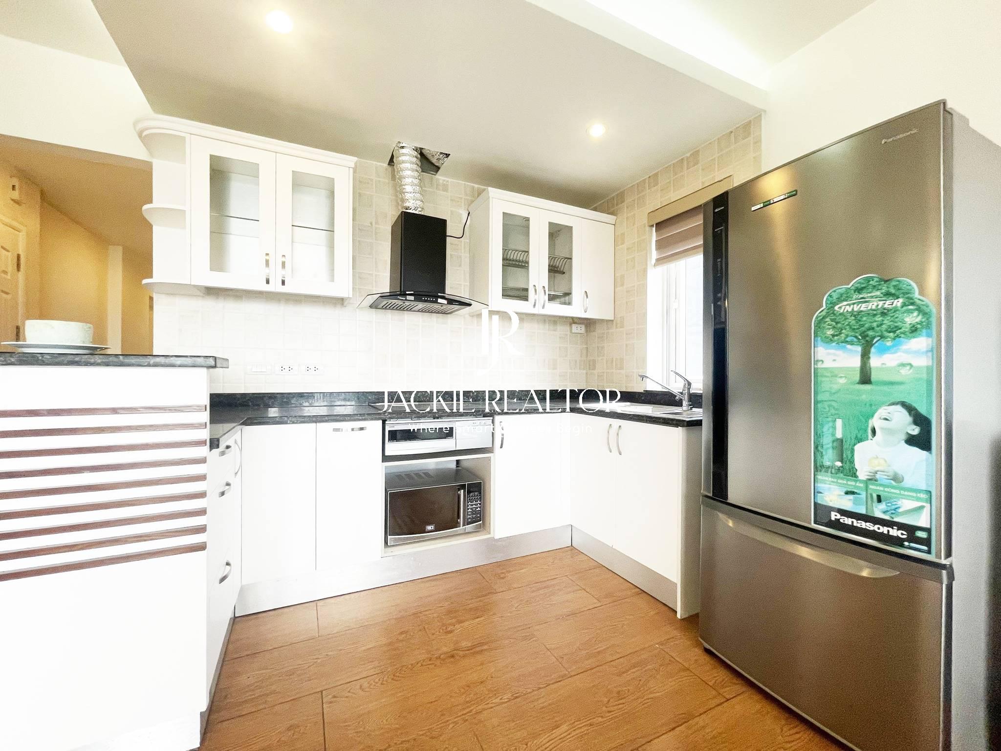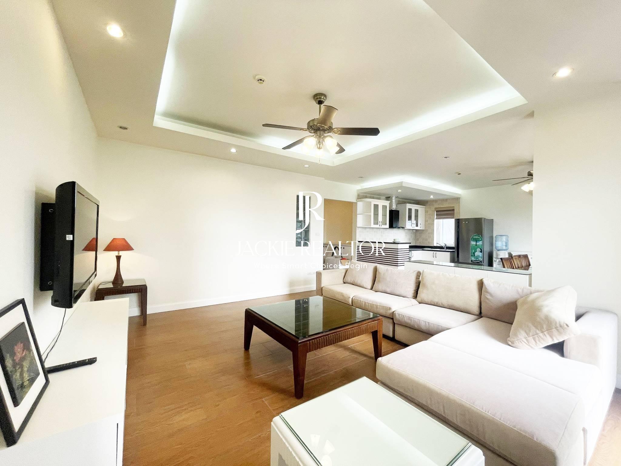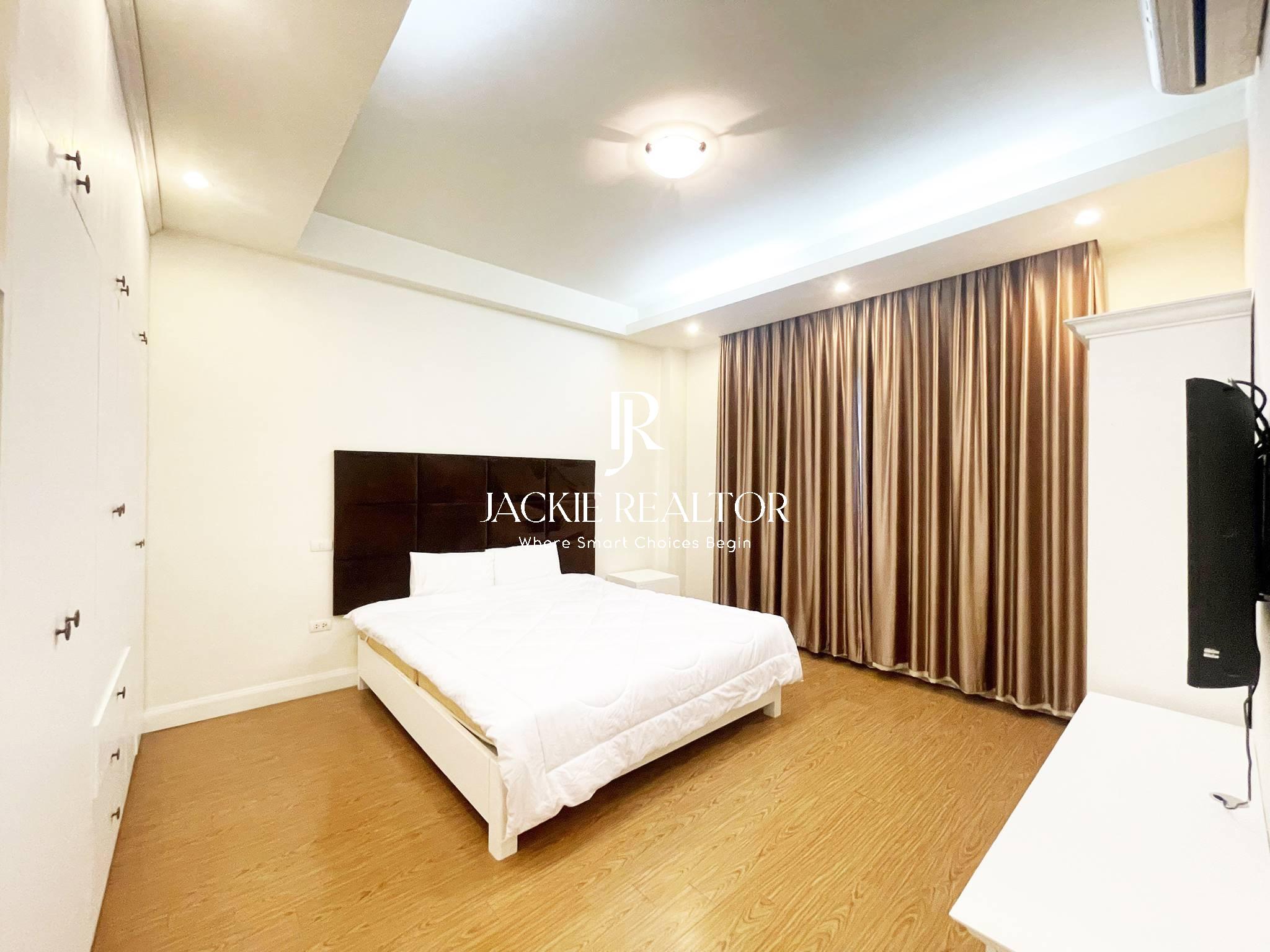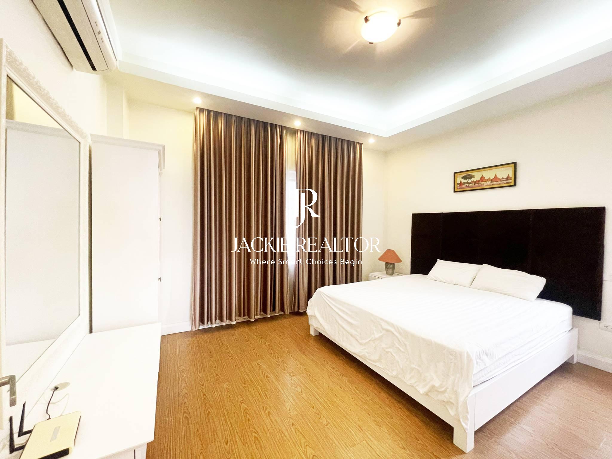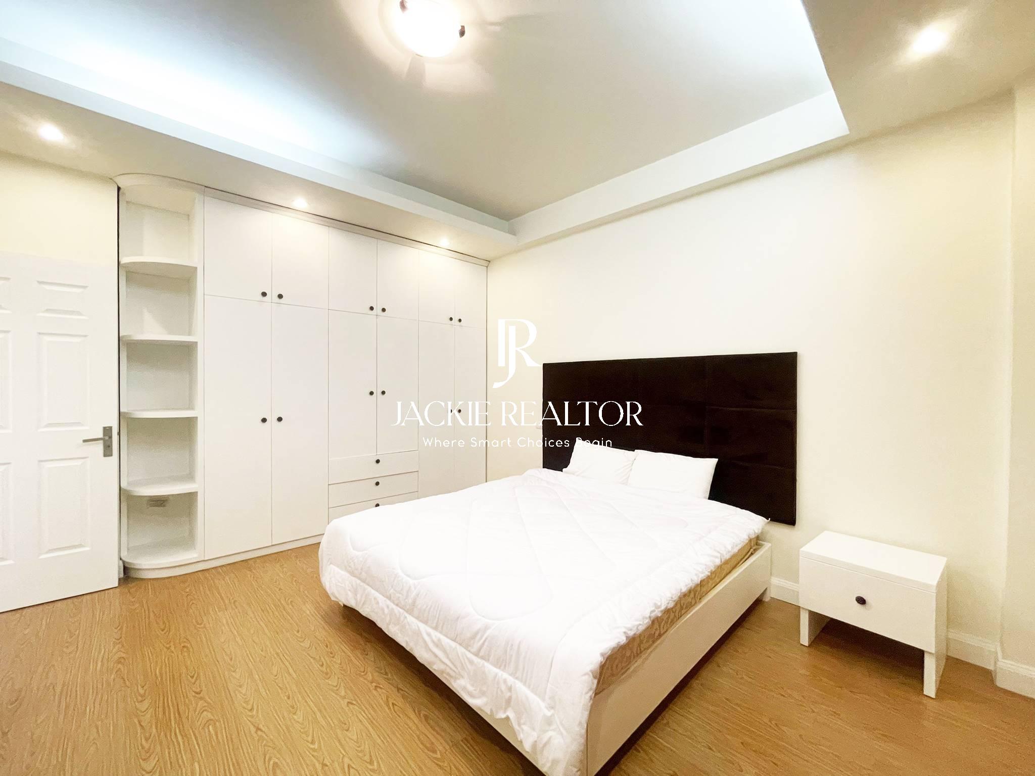 The apartment comes with services to serve for residents as internet, cable tv, water consumption, cleaning service. It's staying on the nice floor which faces with the West Lake and a nice park in front of the building. In addition, it's nearby the Horizon Bilingual International School that's convenient for children following the education here.
