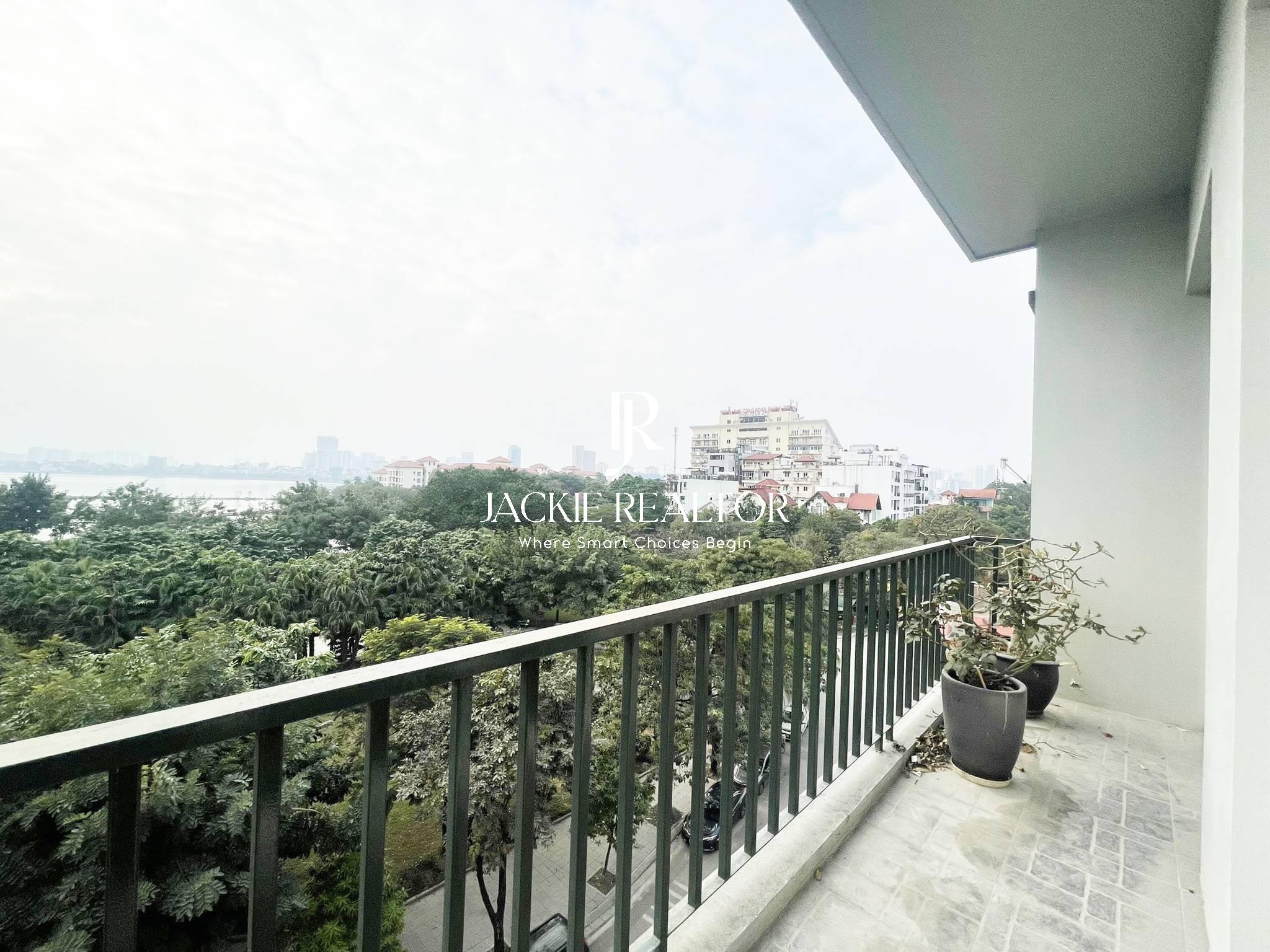 This is an elegant lakeview apartment for rent in To Ngoc Van Street, Tay Ho District!
