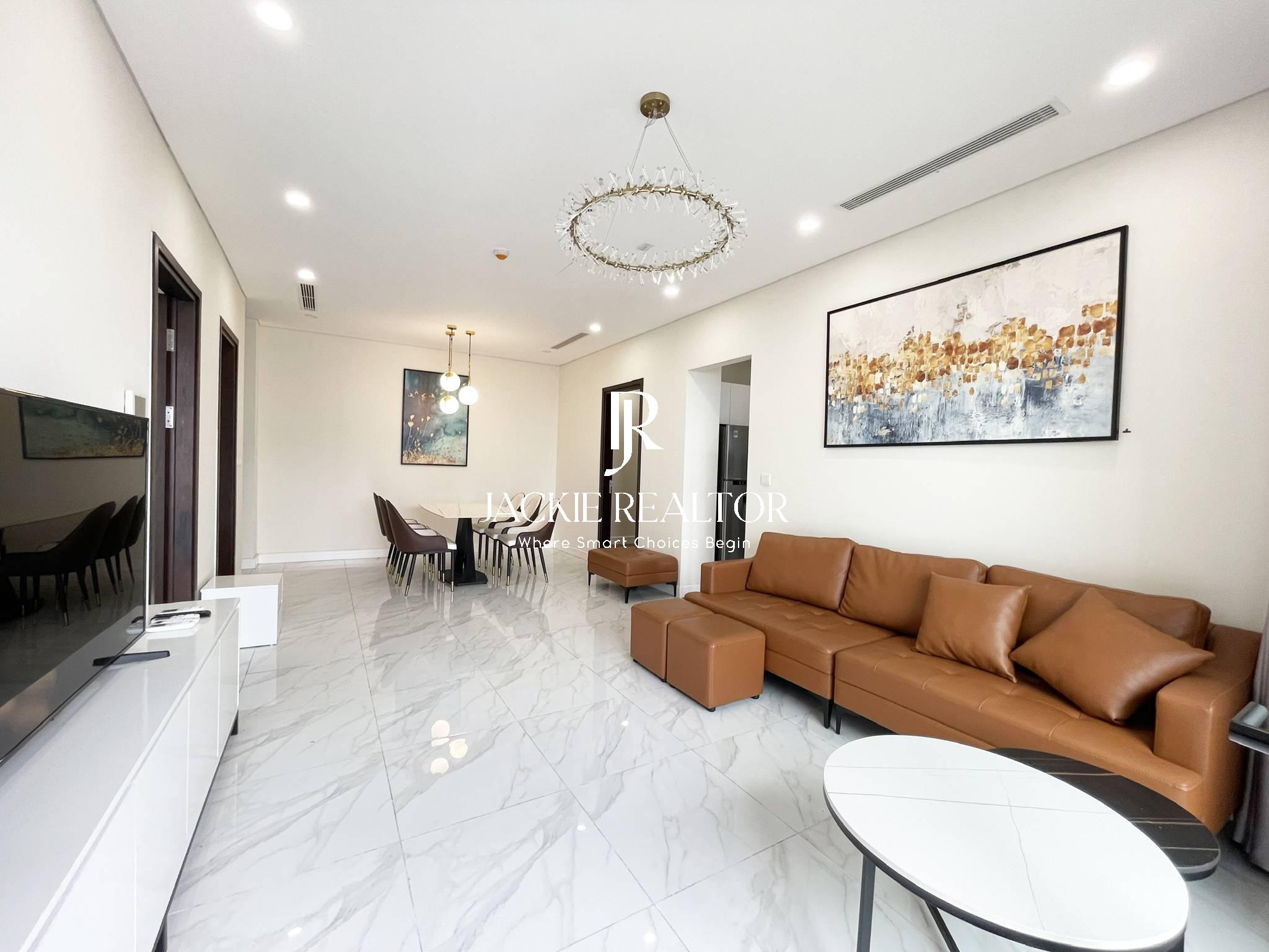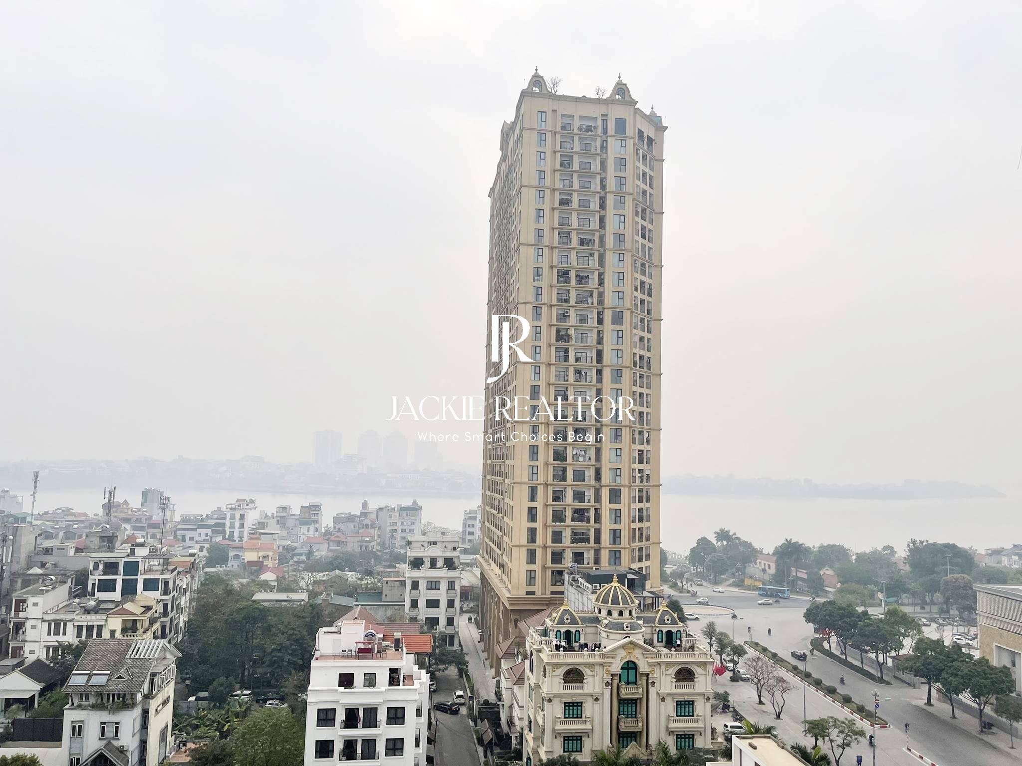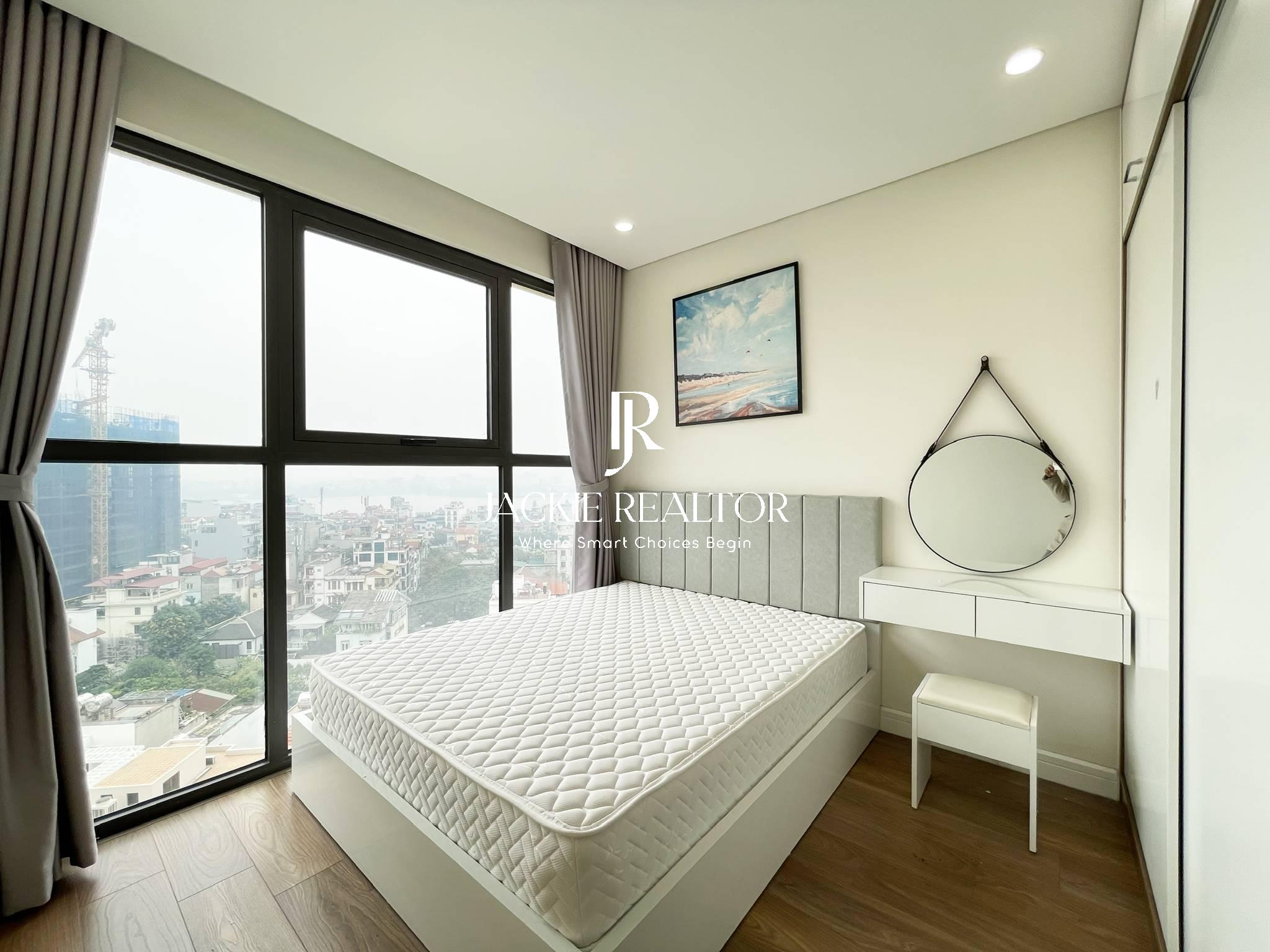 The apartment is located on the middle floor of the E2 building of the project which is owned by an extremely friendly host from abroad. The usable area is only 85m2; However, the apartment is very reasonable and smartly designed, so it still has 3 bedrooms and 2 bathrooms with a living room overlooking the West Lake, a long kitchen and a spacious dining area. In particular, the rooms are equipped with modern furniture and electronic equipment, but the rent is only 850 USD/month, extremely cheap for a 3-bedroom apartment on the rental market in D' El Dorado.