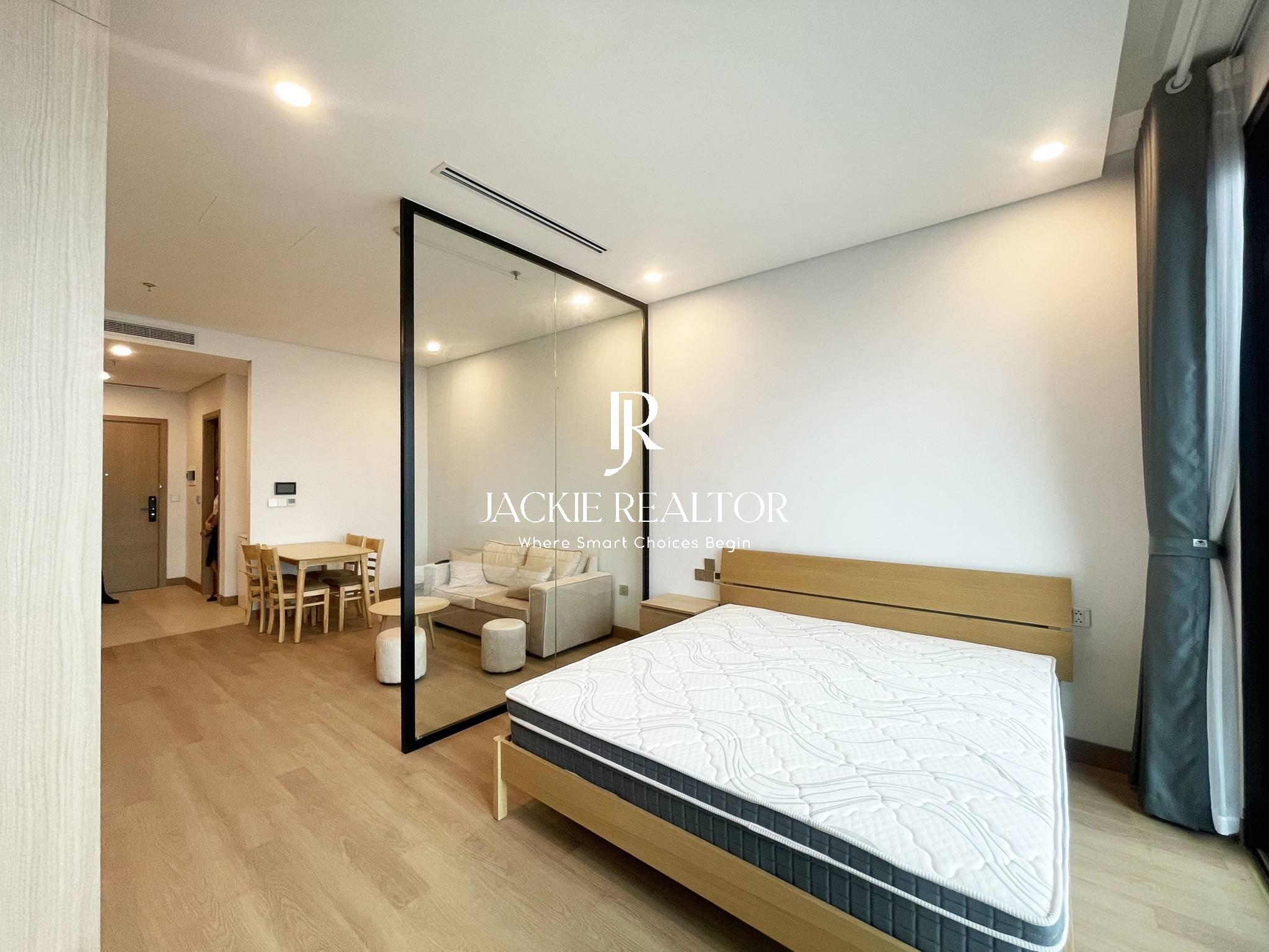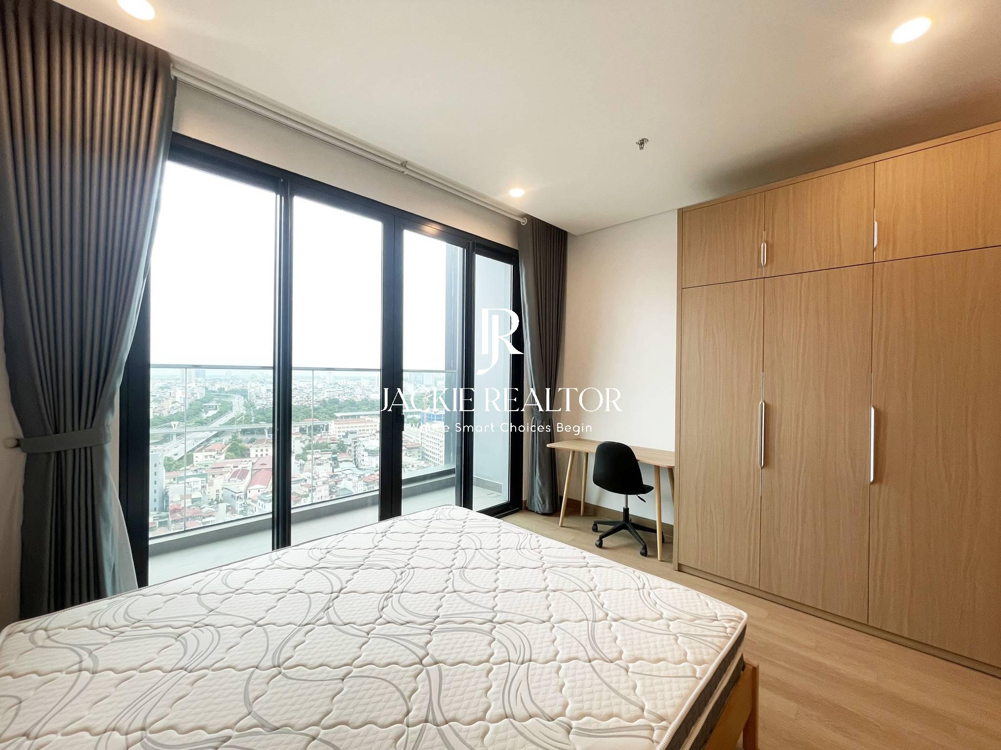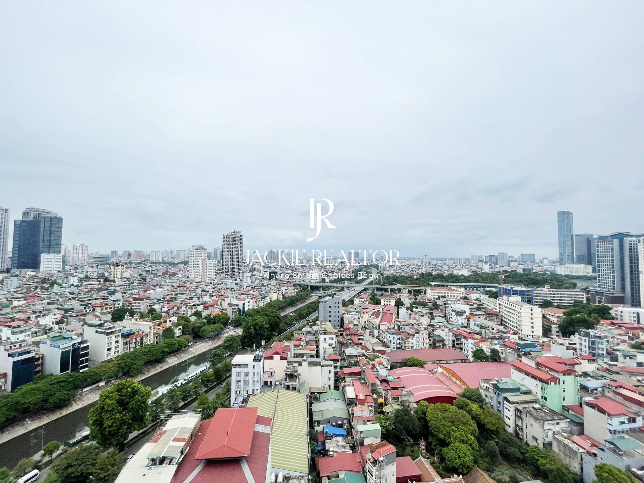 This studio apartment is located on the 18th floor with a beautiful view of To Lich River. It's a nice flat with an area of 45 sqm which is designed with a living room, a kitchen, a dining area, a bathroom with a shower plus a space to for sleeping with bed, wardrobe, and a set of make-up table and chair.