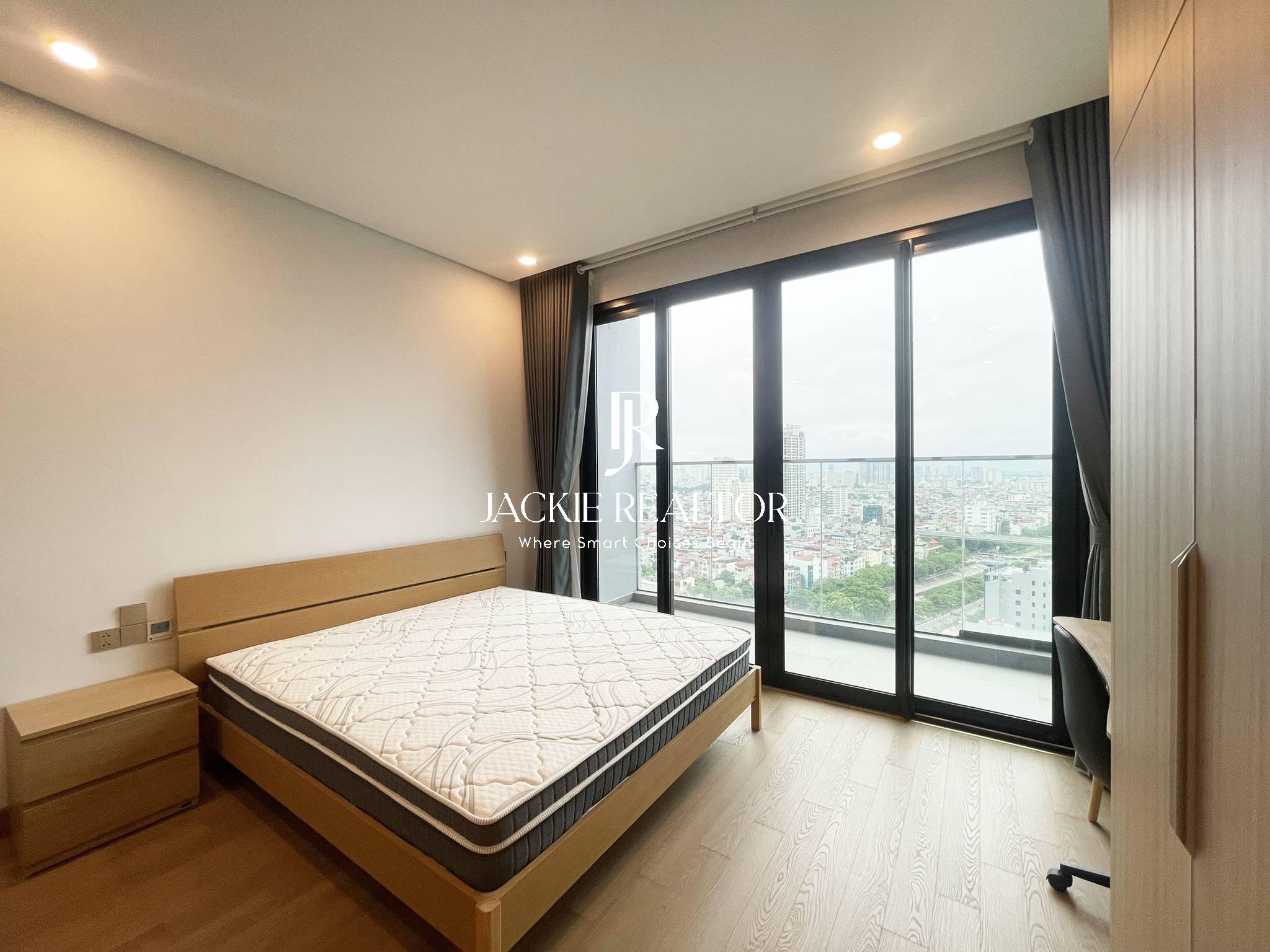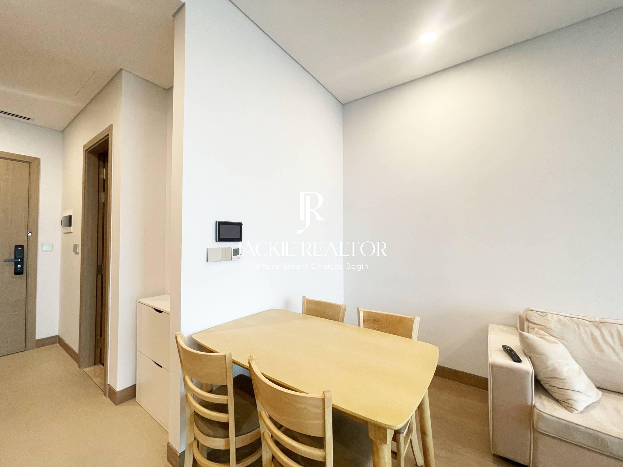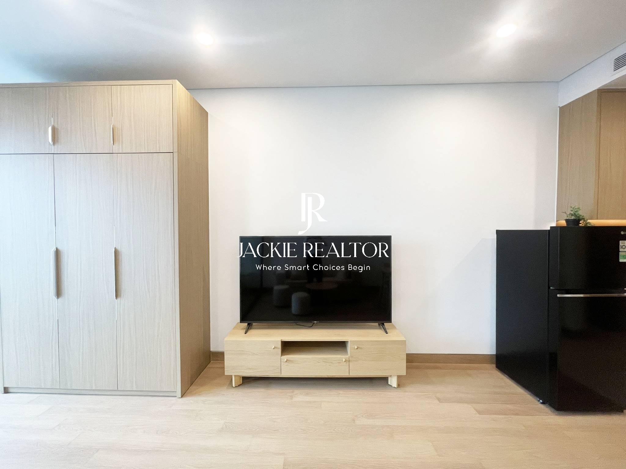 This studio apartment is located on the 18th floor with a beautiful view of To Lich River. It's a nice flat with an area of 45 sqm which is designed with a living room, a kitchen, a dining area, a bathroom with a shower plus a space to for sleeping with bed, wardrobe, and a set of make-up table and chair.