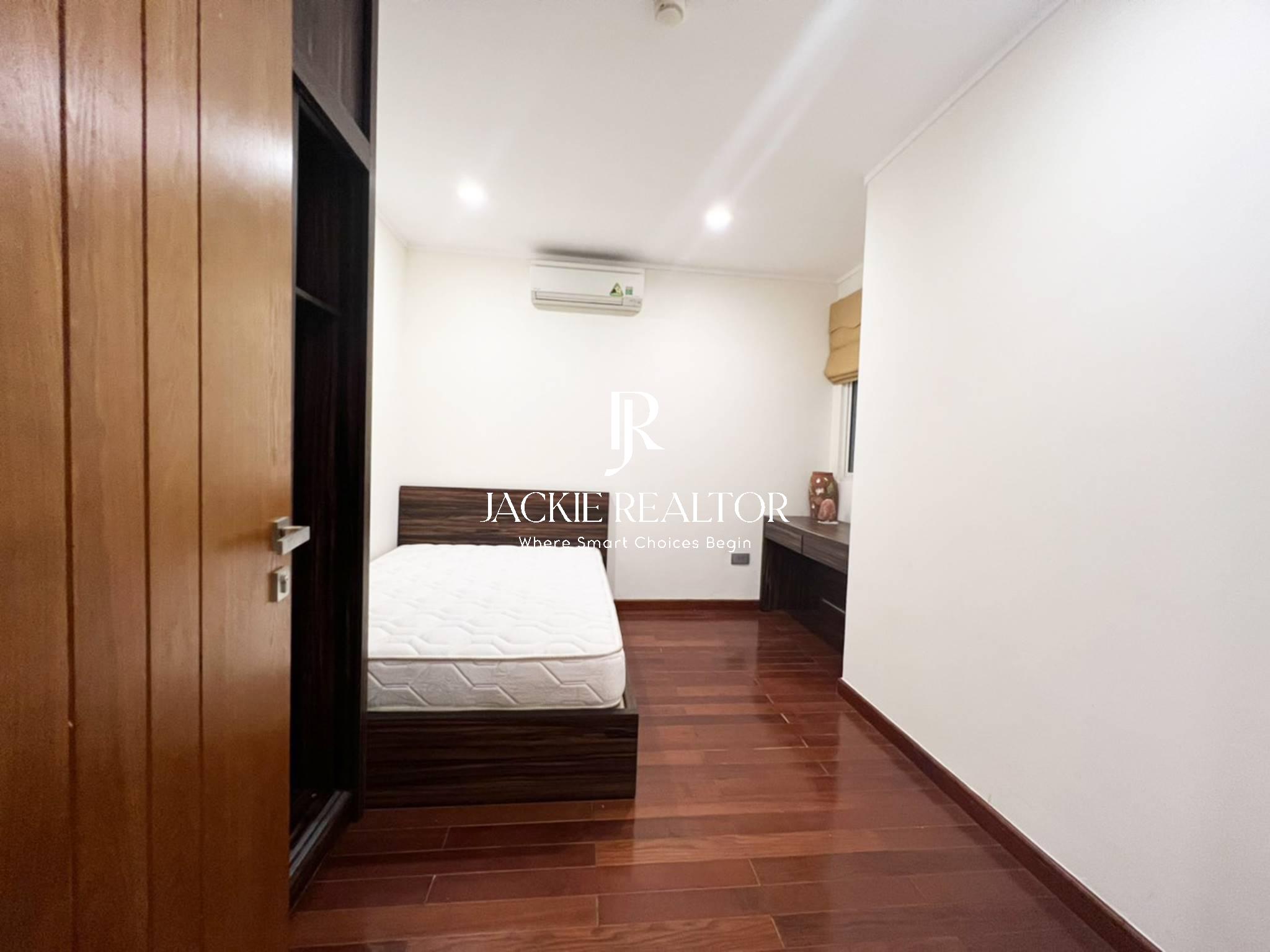 The apartment is staying on the nice floor of L1 building, Ciputra Hanoi international urban area. The apartment is well built up with a total usable area of 114 sqm that is arranged with 3 bedrooms & 2 bathrooms full of furnishings. The apartment is not so fancy but enough all necessary things for you to use!