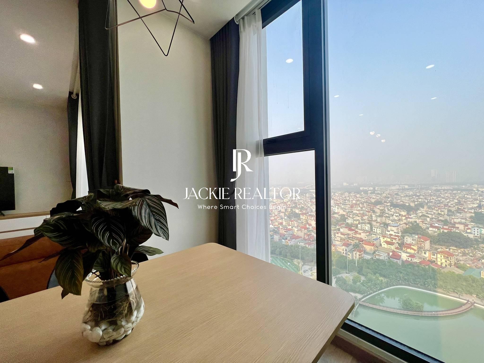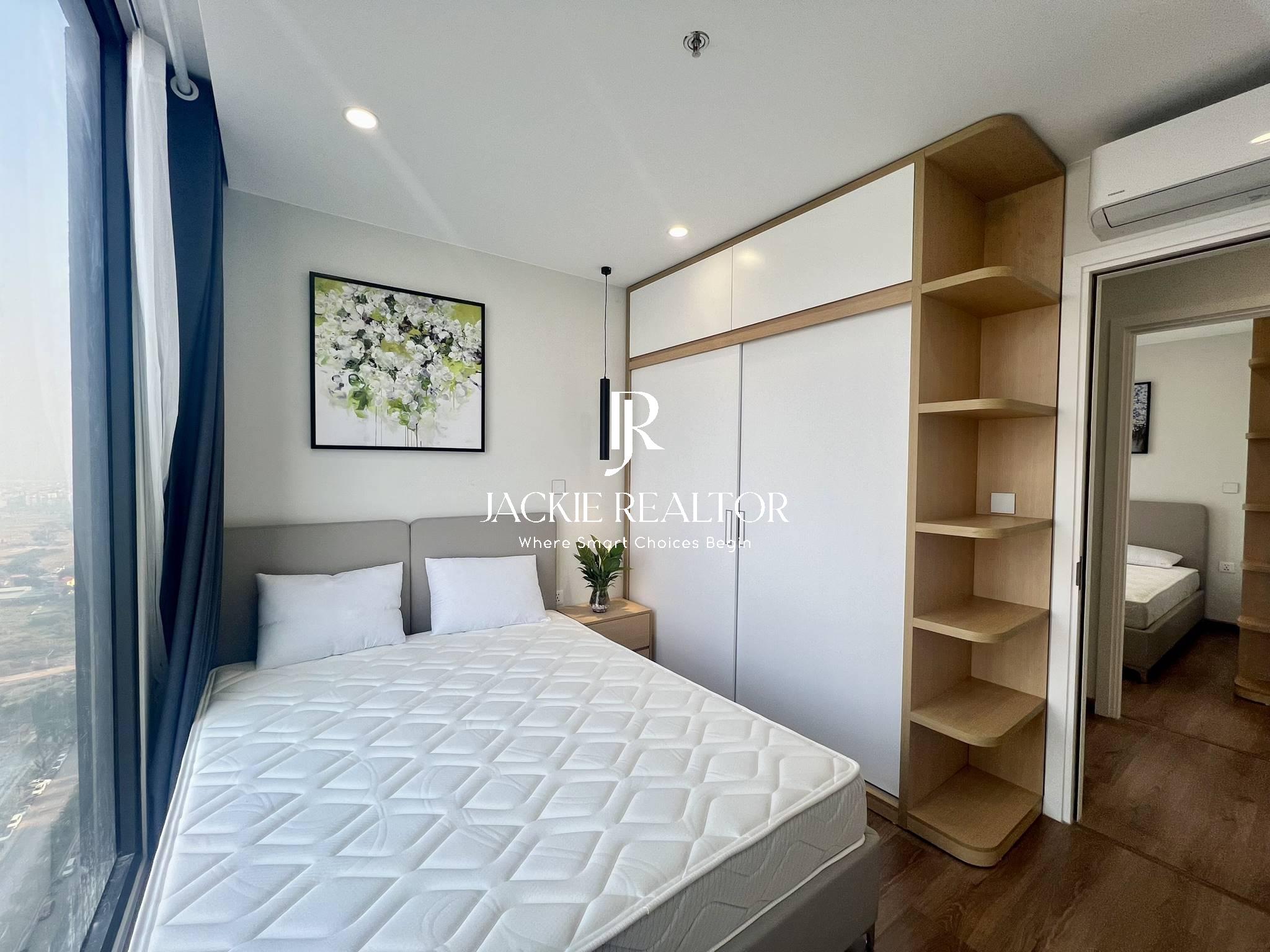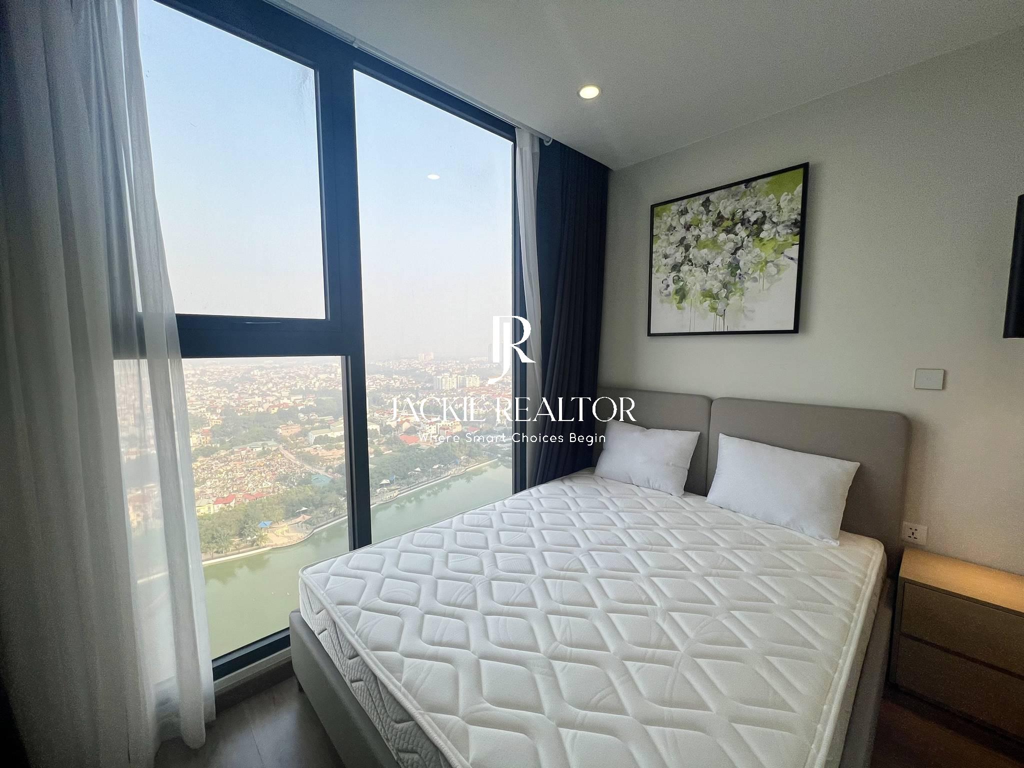 Jackie Realtor believes you couldn't miss out this option if you are looking for an apartment to rent in Vinhomes Smart City. With a total usable area of 64 sqm, this apartment is well laid out with 2 bright bedrooms with a nice view of lake, 2 ensuite bathrooms with showers, the living has a nice balcony with lake view also, the kitchen is large with 2 sides that has all equipment.