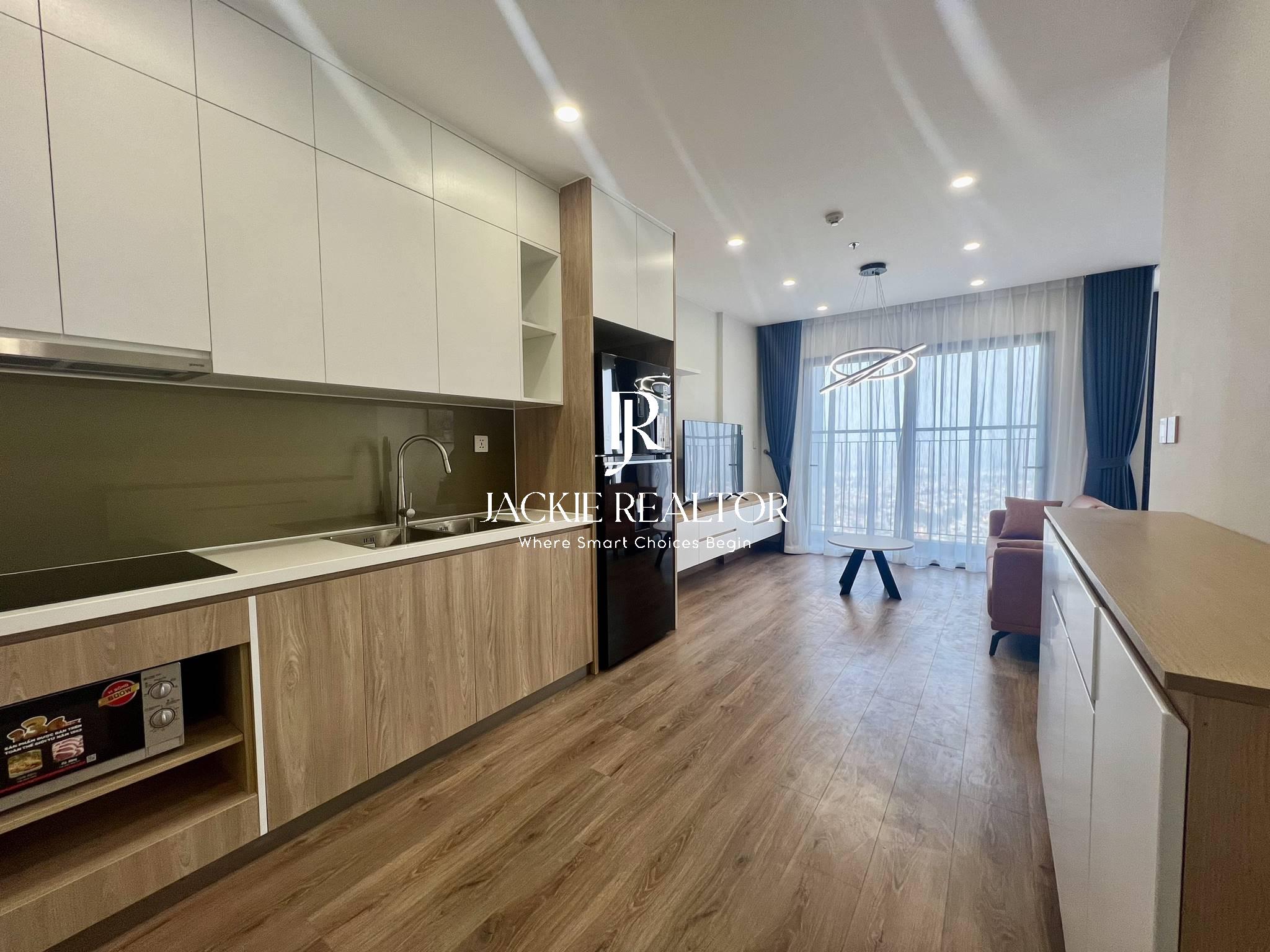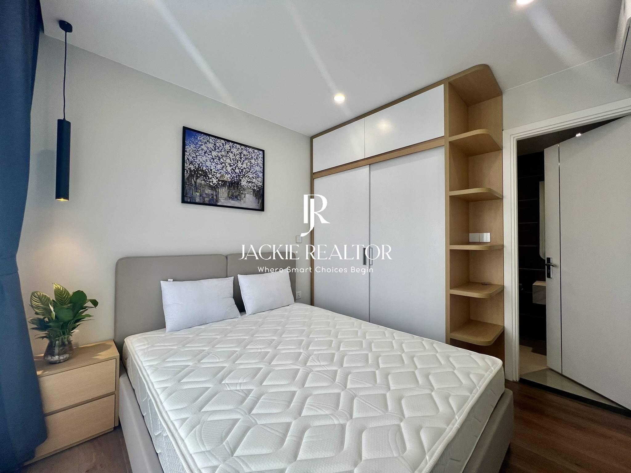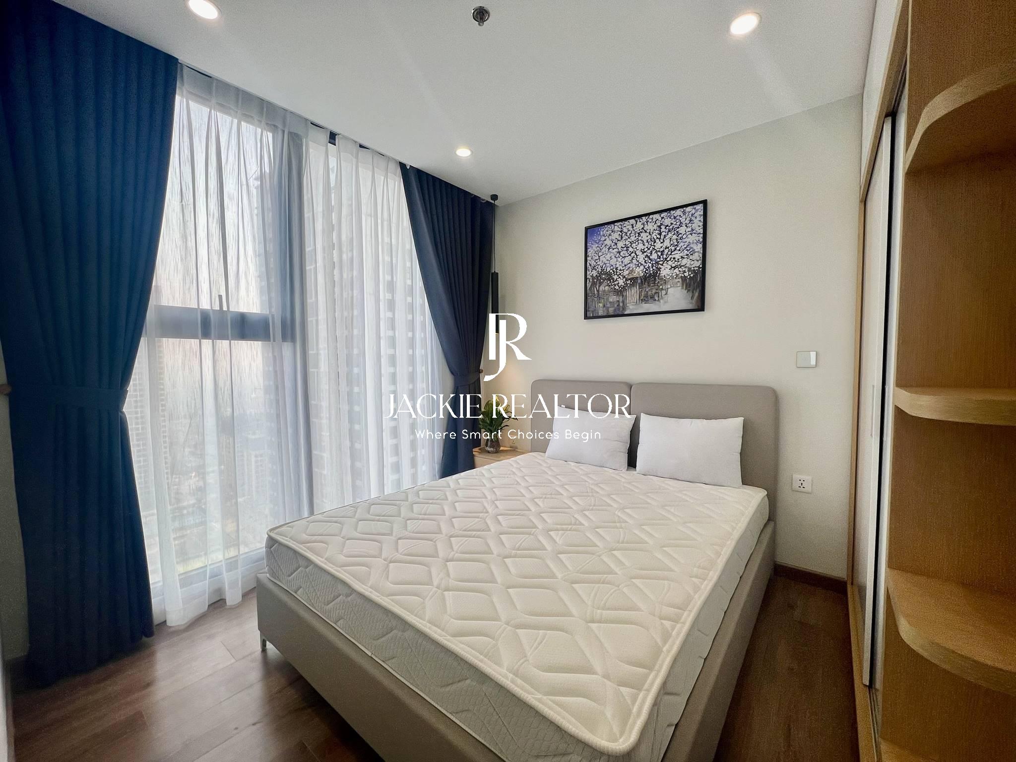 Jackie Realtor believes you couldn't miss out this option if you are looking for an apartment to rent in Vinhomes Smart City. With a total usable area of 64 sqm, this apartment is well laid out with 2 bright bedrooms with a nice view of lake, 2 ensuite bathrooms with showers, the living has a nice balcony with lake view also, the kitchen is large with 2 sides that has all equipment.