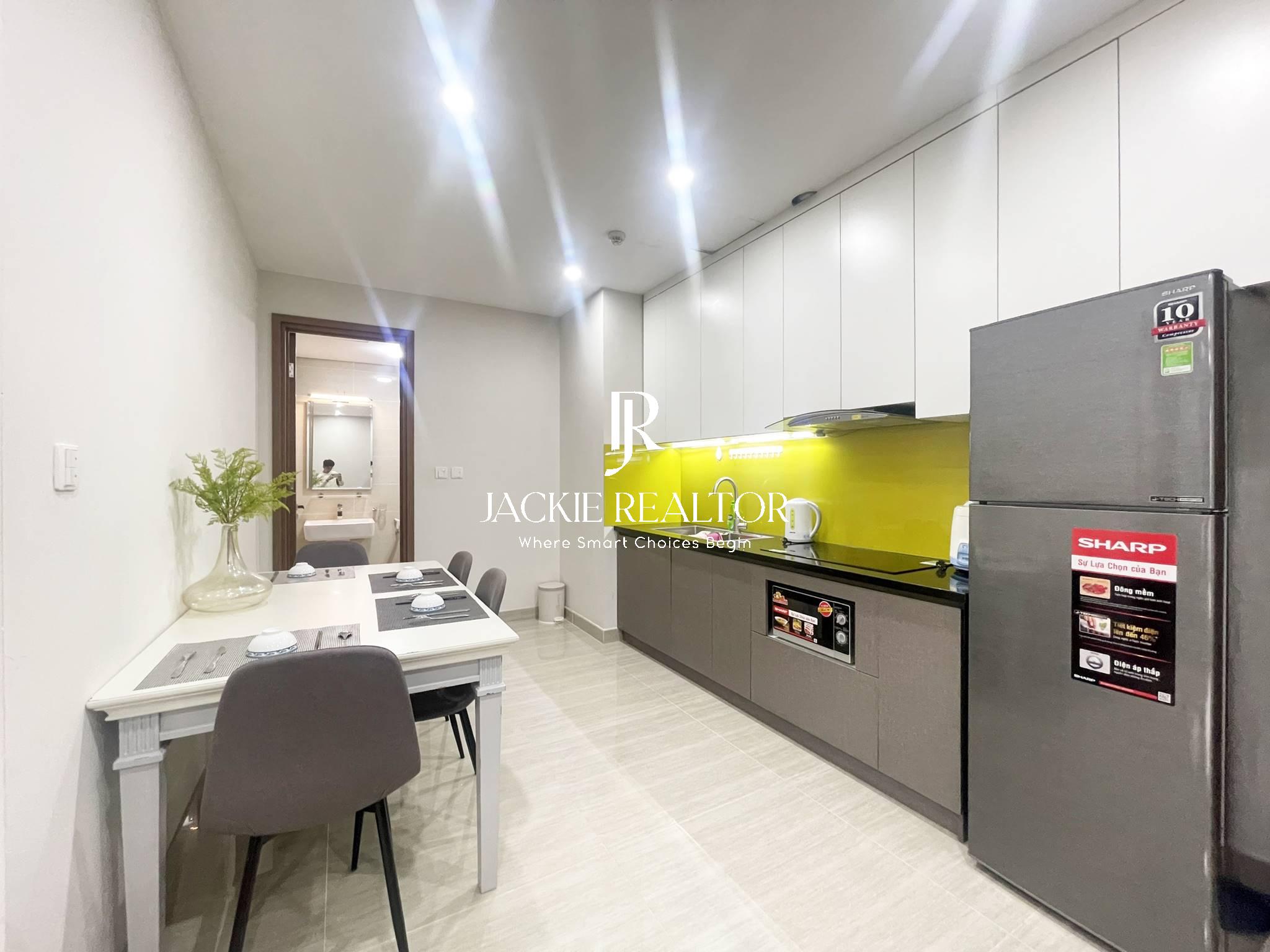 The Link Ciputra is offering a 58m2 fully furnished apartment for rent. This apartment features one bedroom, one office space, one bathroom, a living room, kitchen, and dining area. It is move-in ready, making it a convenient option for individuals or couples.