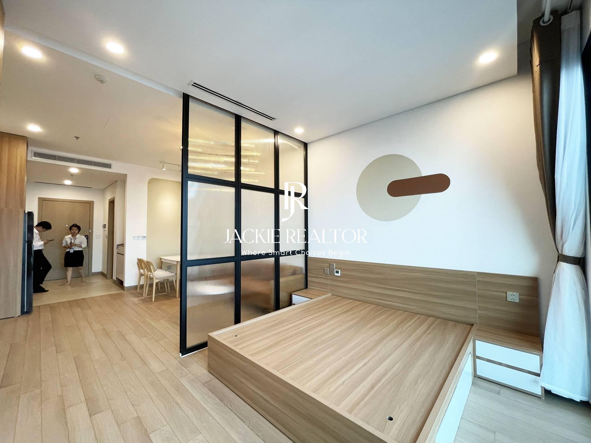 With a total usable area of 45 sqm, this apartment is designed as a studio style with a living room and a dining room, a bathroom. In addition, the apartment has a balcony overlooking the city so it will be sparkling in the evening.