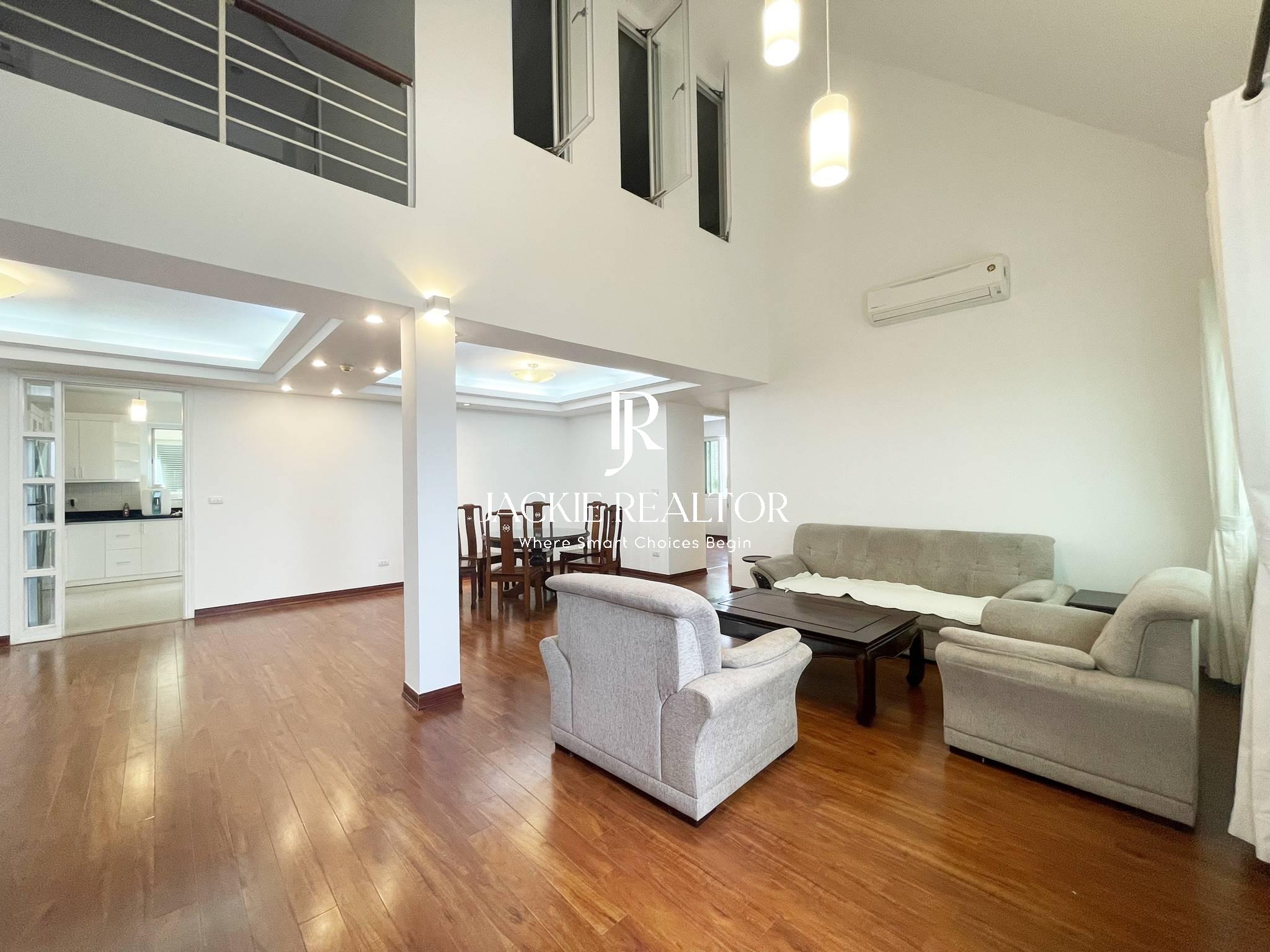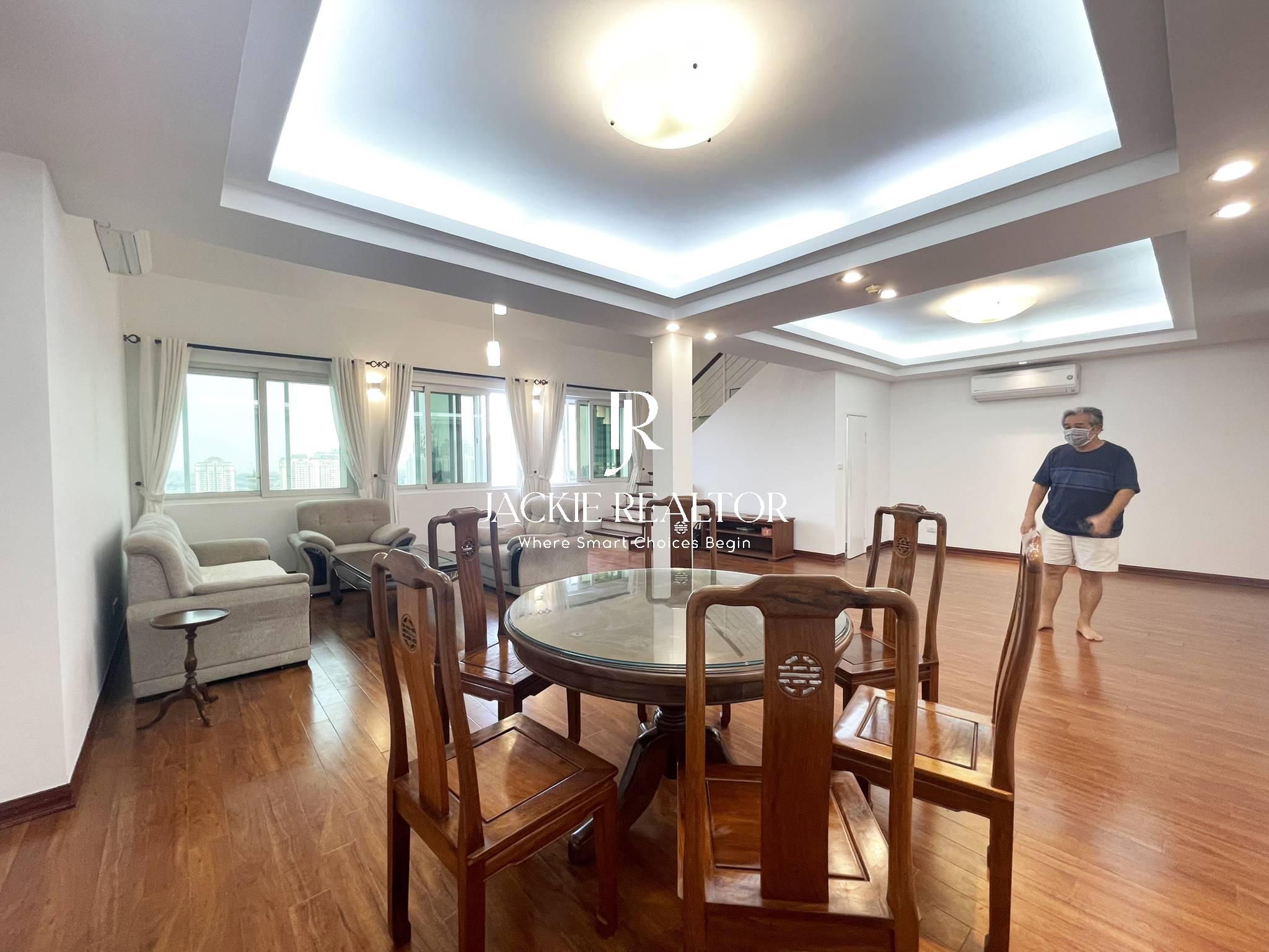 This penthouse is located in Ciputra which is closed to Hanoi Academy, SIS, UNIS for rent. This is a nice apartment renovated recently so you will see it new and clean. It's built up with 2 floors with a total area of 215 sqm and designed with 3 bedrooms and 3 bathrooms. All the rooms are fully furnished with nice interior and electronic equipment.