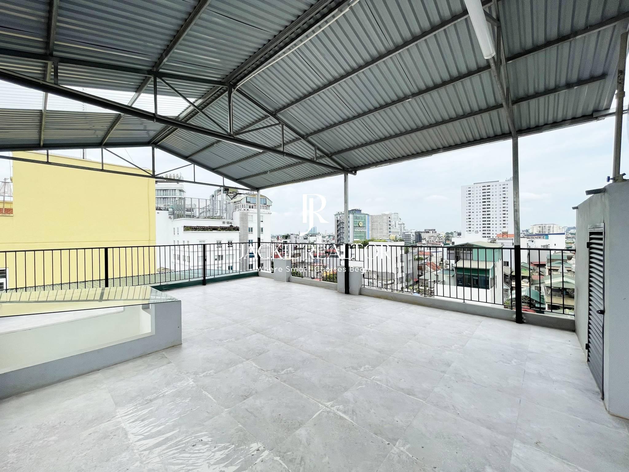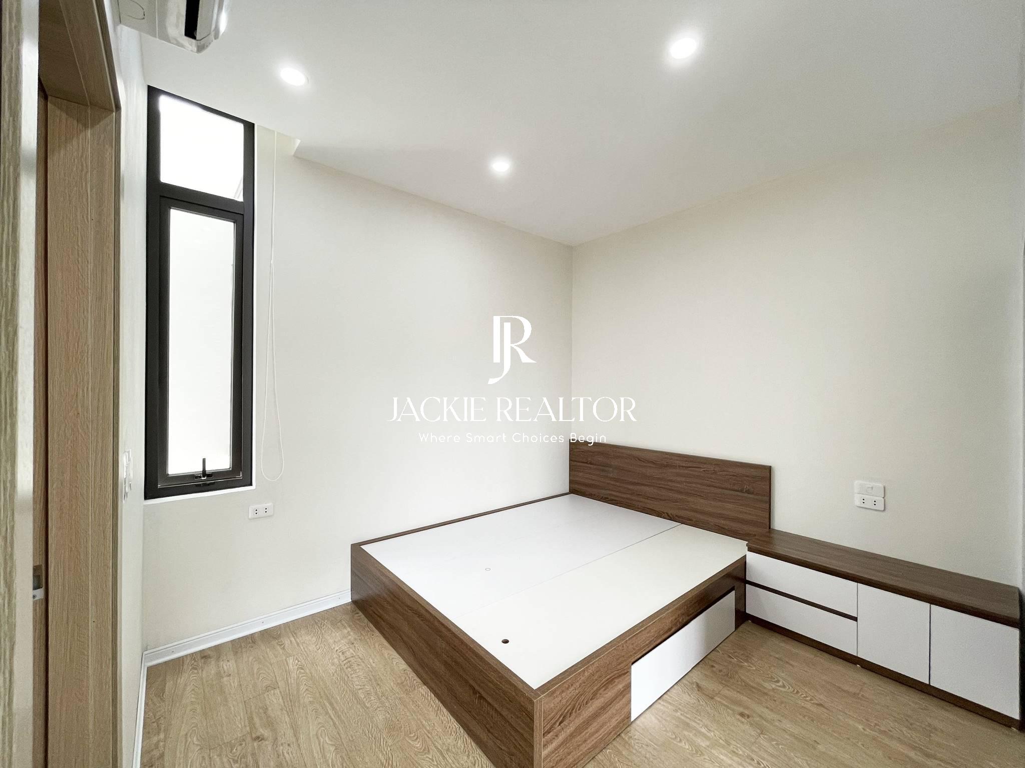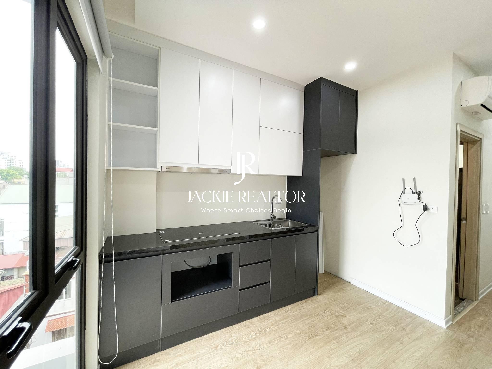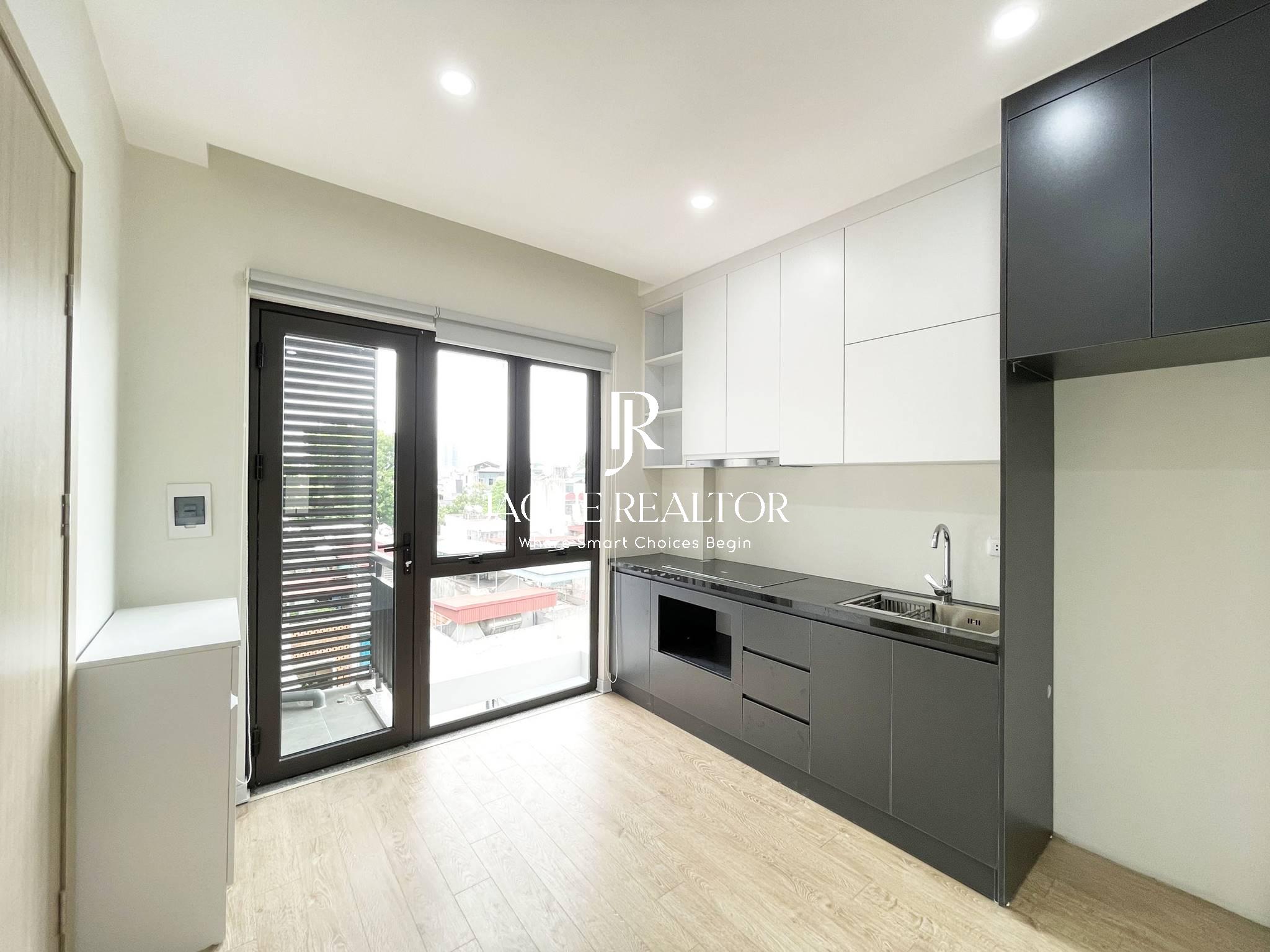 This apartment is located in Thuy Khue which is opposite Thu Cuc Hospital and close to Chu Van An School for rent. It's designed as a studio style with an area of 20sqm and included a space for a dining area, a bedroom and a bathroom. A small balcony is laid out next to the dining room to put a washing and dryer machine for laundry. It is fully furnished with brand-new interiors. And ready to move in immediately!