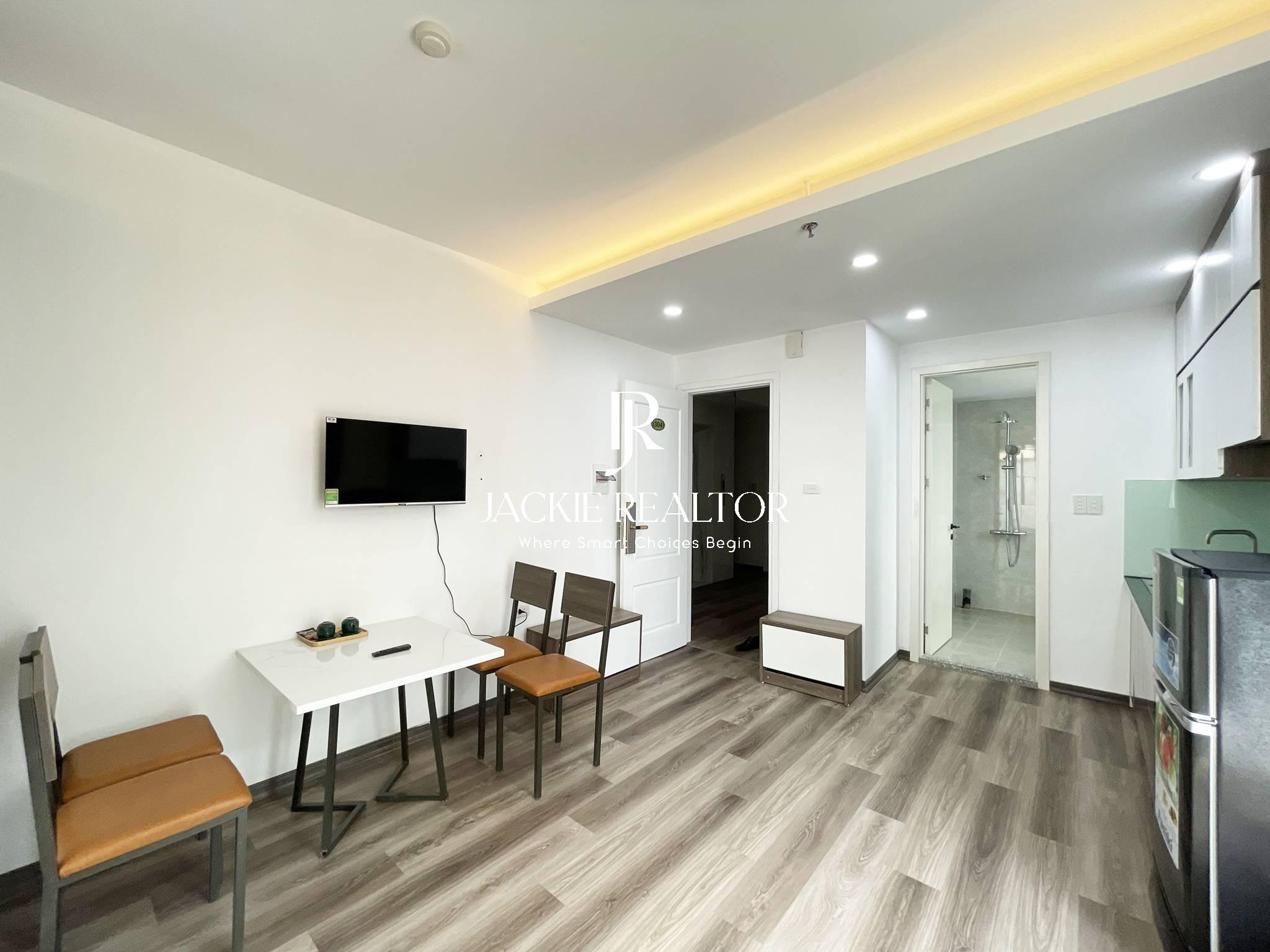With a budget of vnd 8M/month, you can stay in a studio apartment fully furnished from tv, refrigerator, washing machine, kitchen... to bed, wardrobe... The apartment is also extremely spacious with a light-filled space with an area of up to 40m2. The apartment comes with services in the price such as internet, running water, cable TV, cleaning once a week, so you only need to pay for each electricity bill.