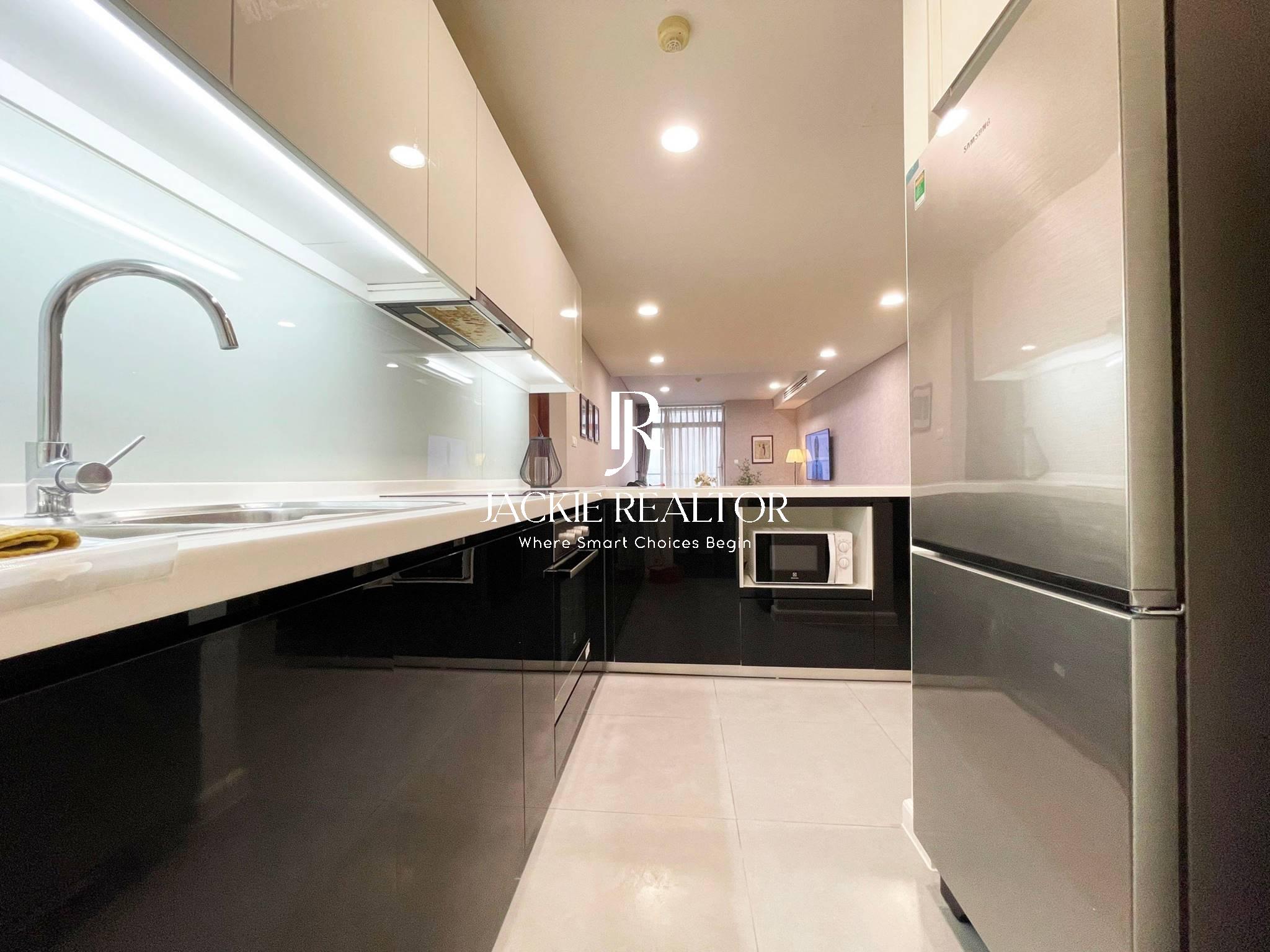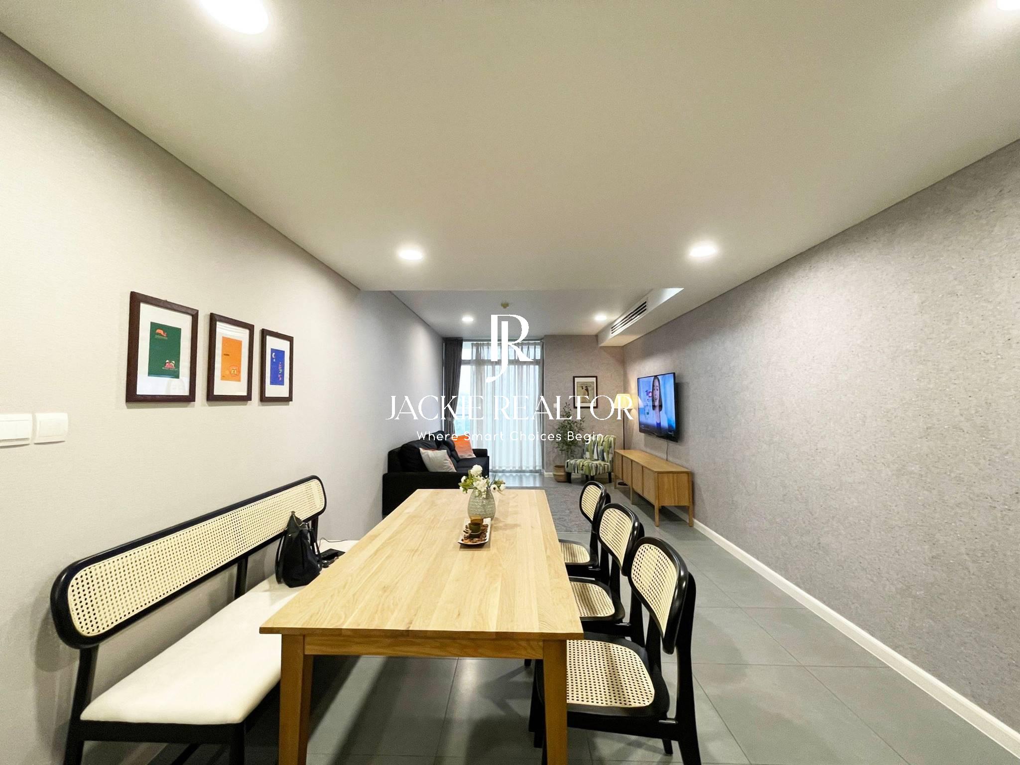 This Watermark apartment was built with a total usable area of up to 78m2 and was renovated extremely carefully as you can see in the photos. The apartment design is extremely reasonable, including 2 bedrooms and 2 bathrooms (with bathtub) along with a living room and a large balcony overlooking the beautiful West Lake with a large kitchen and cozy dining room. The entire wall is covered with gray wallpaper, creating elegance and class for the apartment. The old furniture has been completely replaced and is all expensive items. Modern electronic equipment gives you the feeling of being in a 5-star apartment complex.